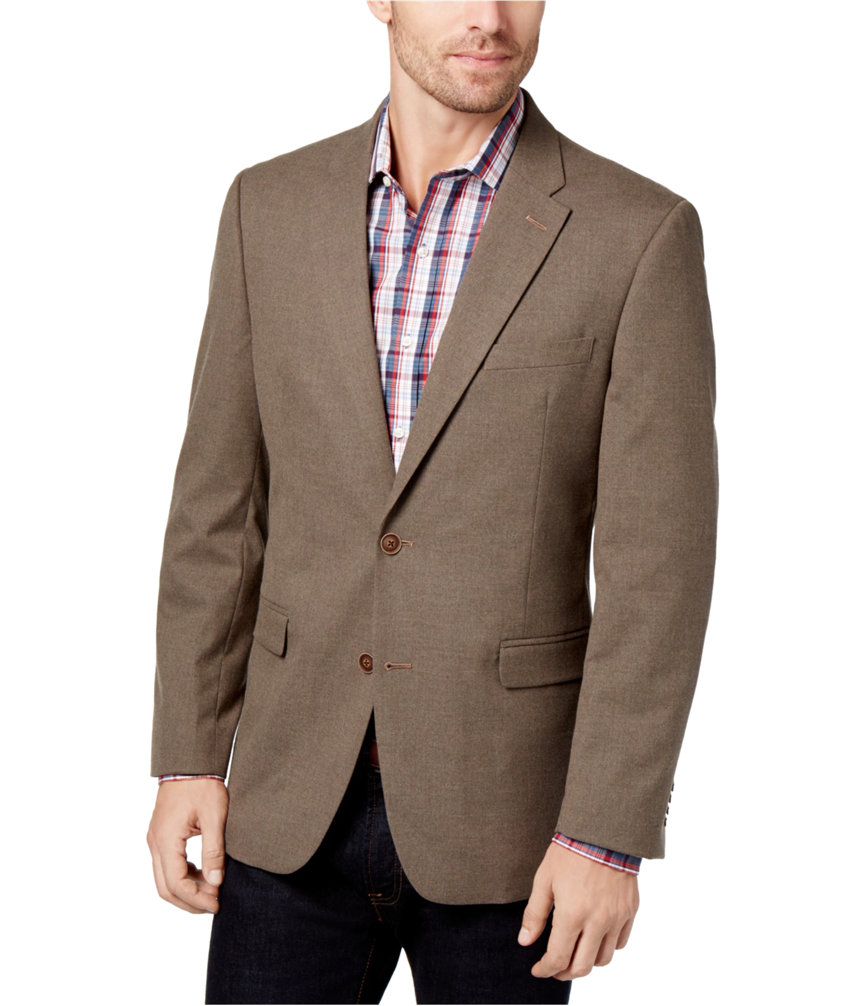 Tommy Hilfiger Mens Stretch Two Button Blazer Jacket, taupe, 42 Regular