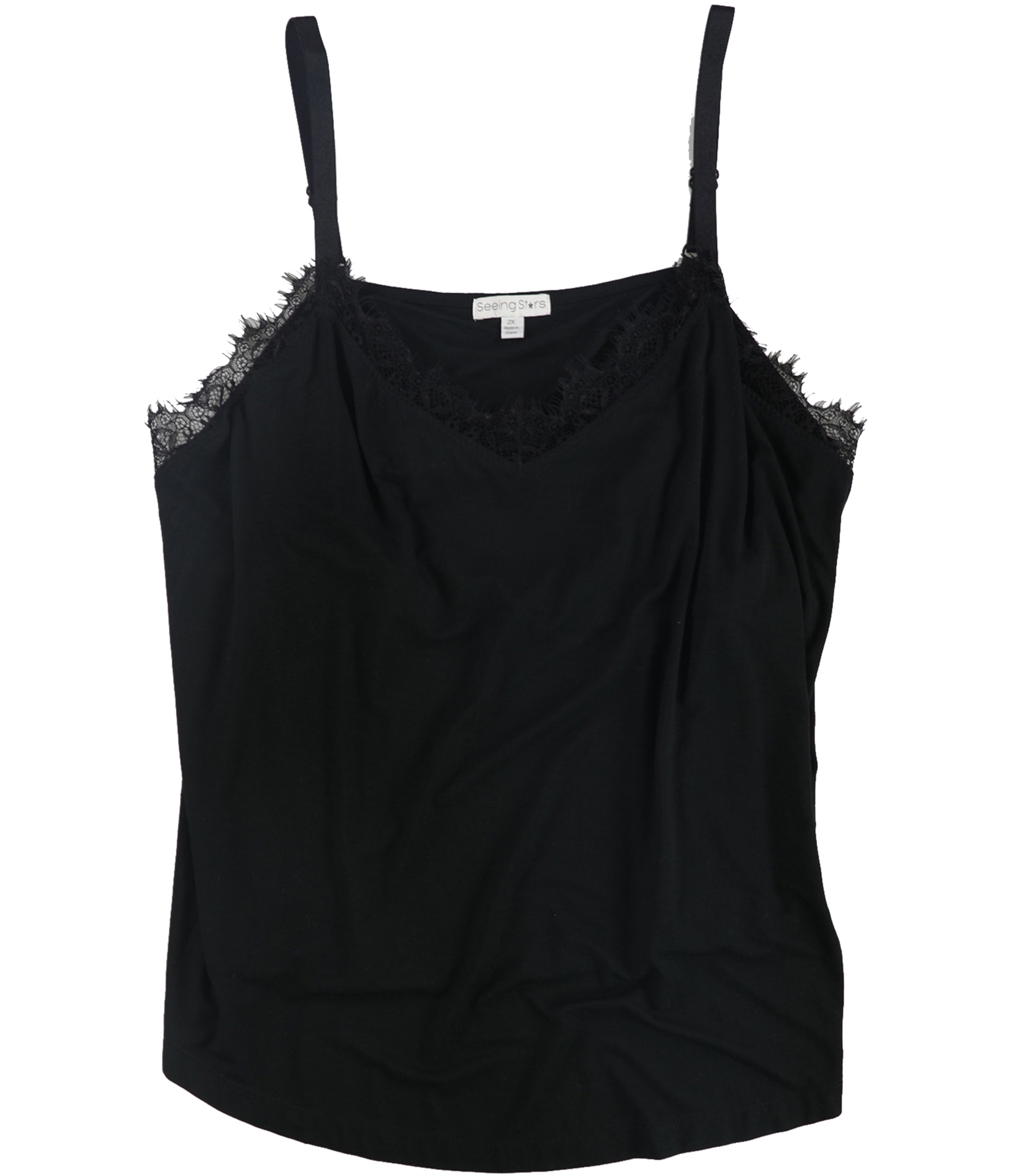 Seeing Stars Womens Lace Detail Pajama Sleep Cami Tank Top, black, Plus Size, 2X
