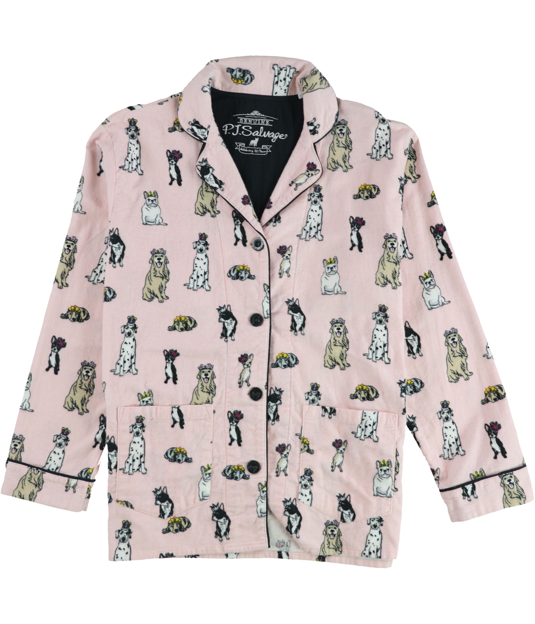 P.J. Salvage Womens Dogs In Crowns Button Down Pajama Tops, pink, S