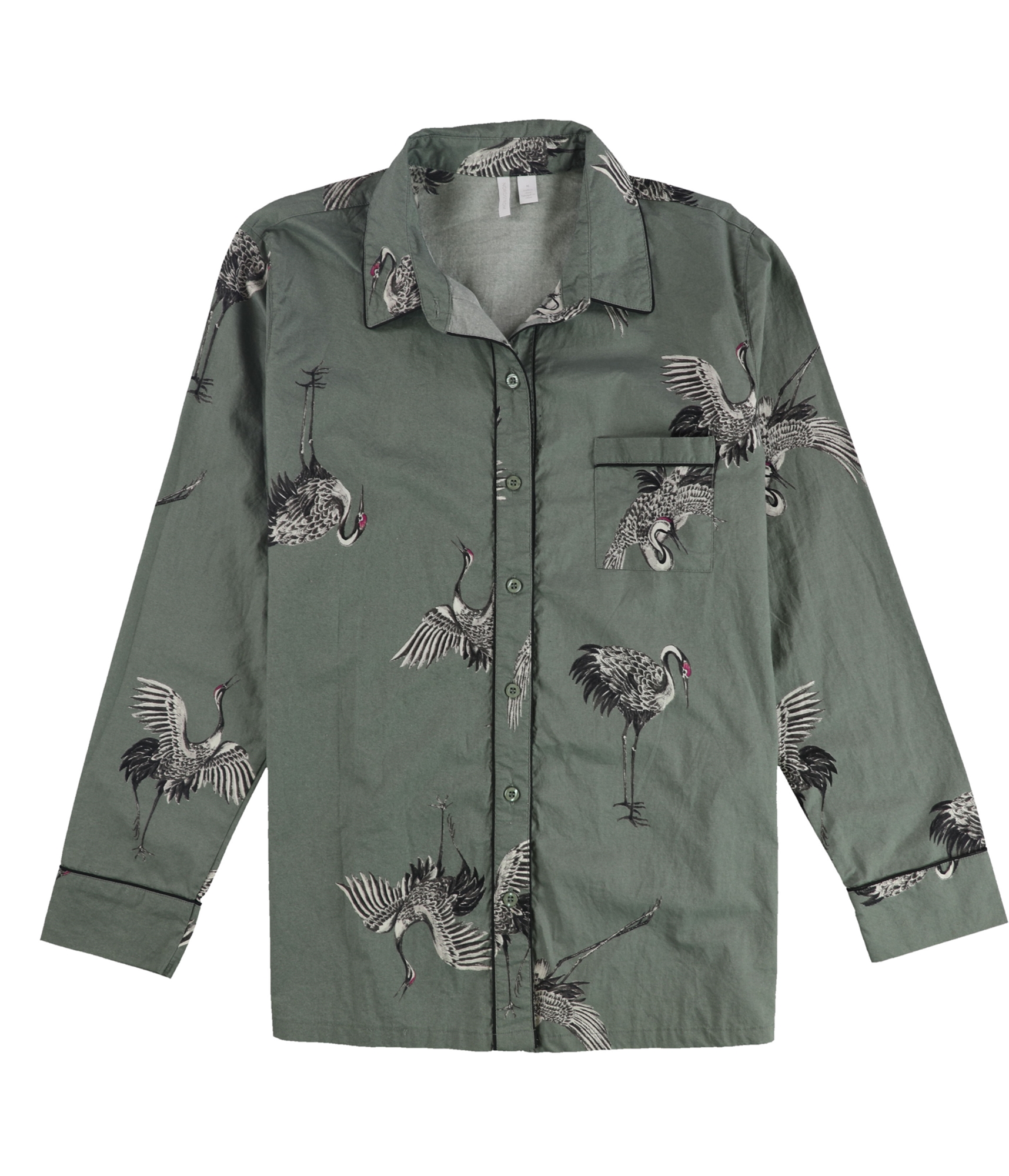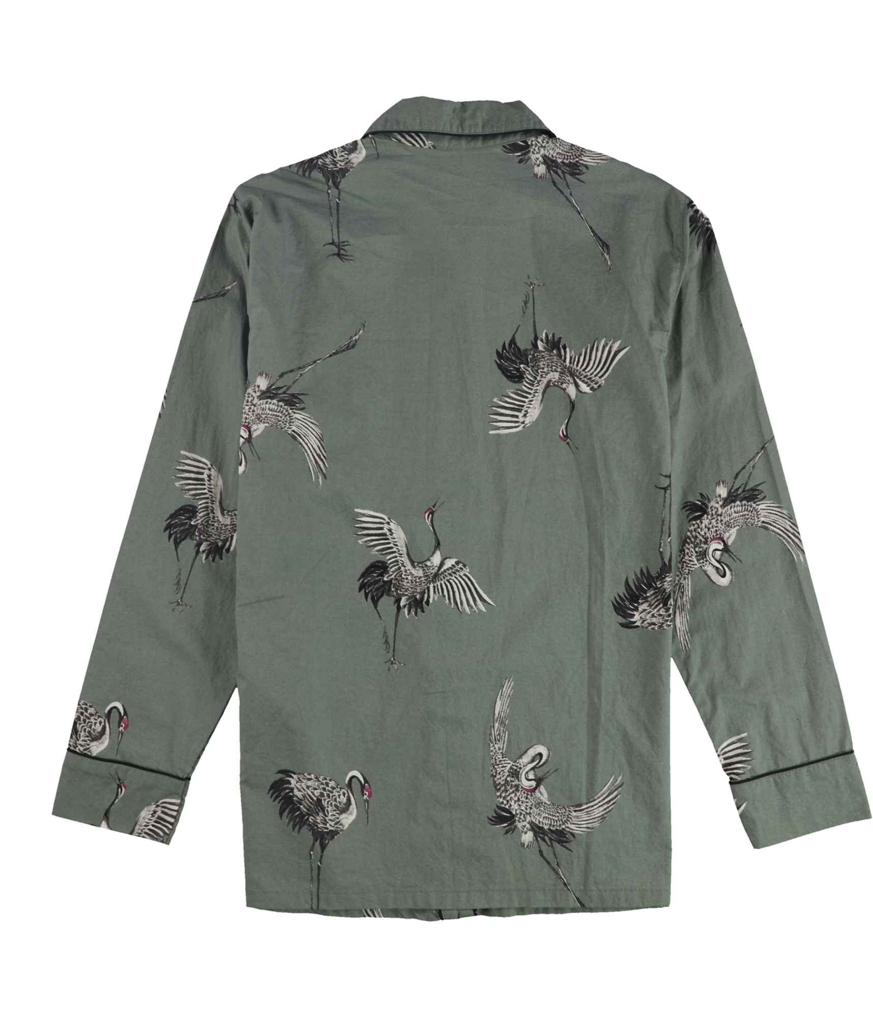 Nordstrom Mens Crane Pattern Button Down Pajama Tops, green, M
