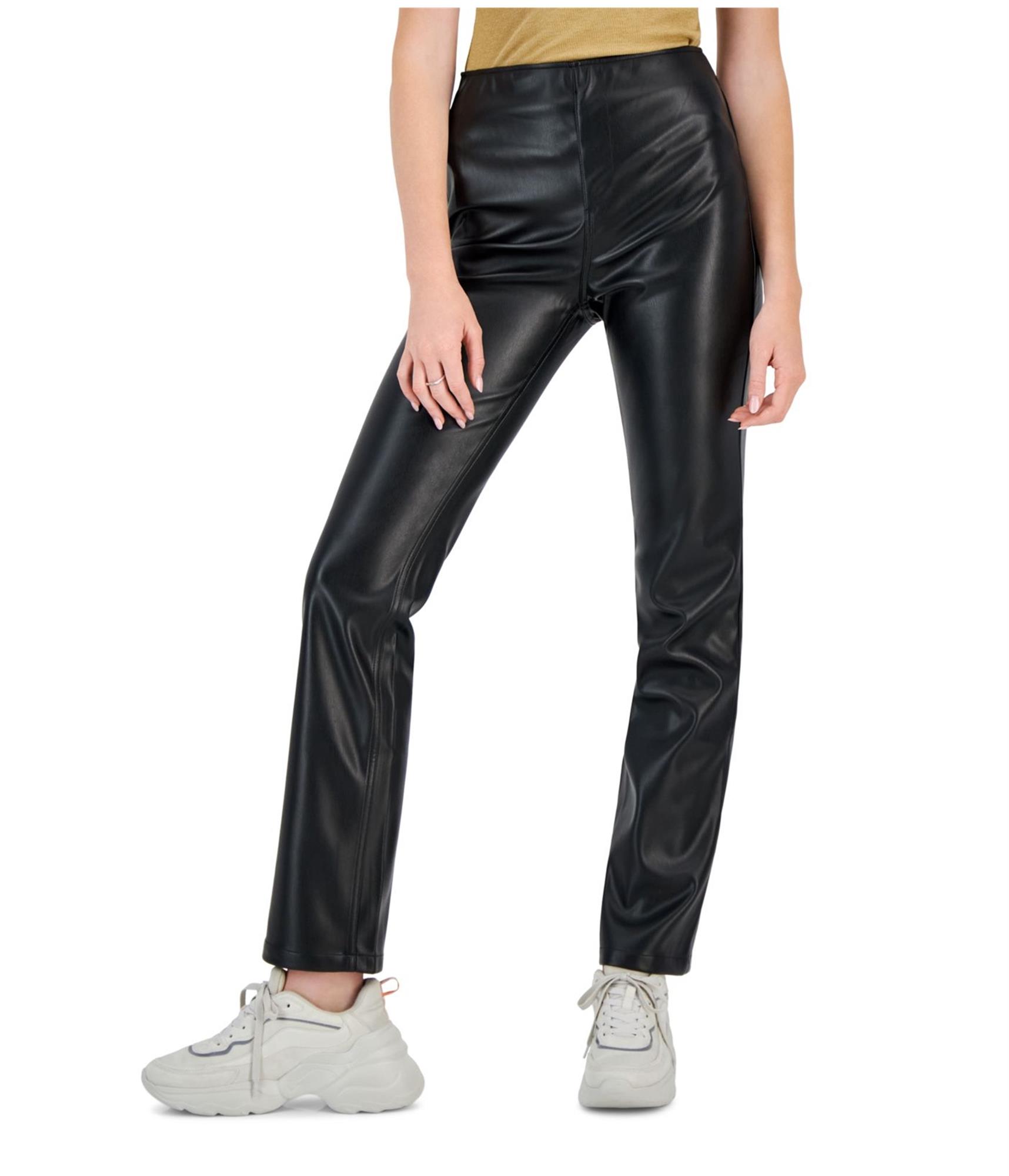 Tinseltown Womens Faux Leather High Rise Casual Trouser Pants