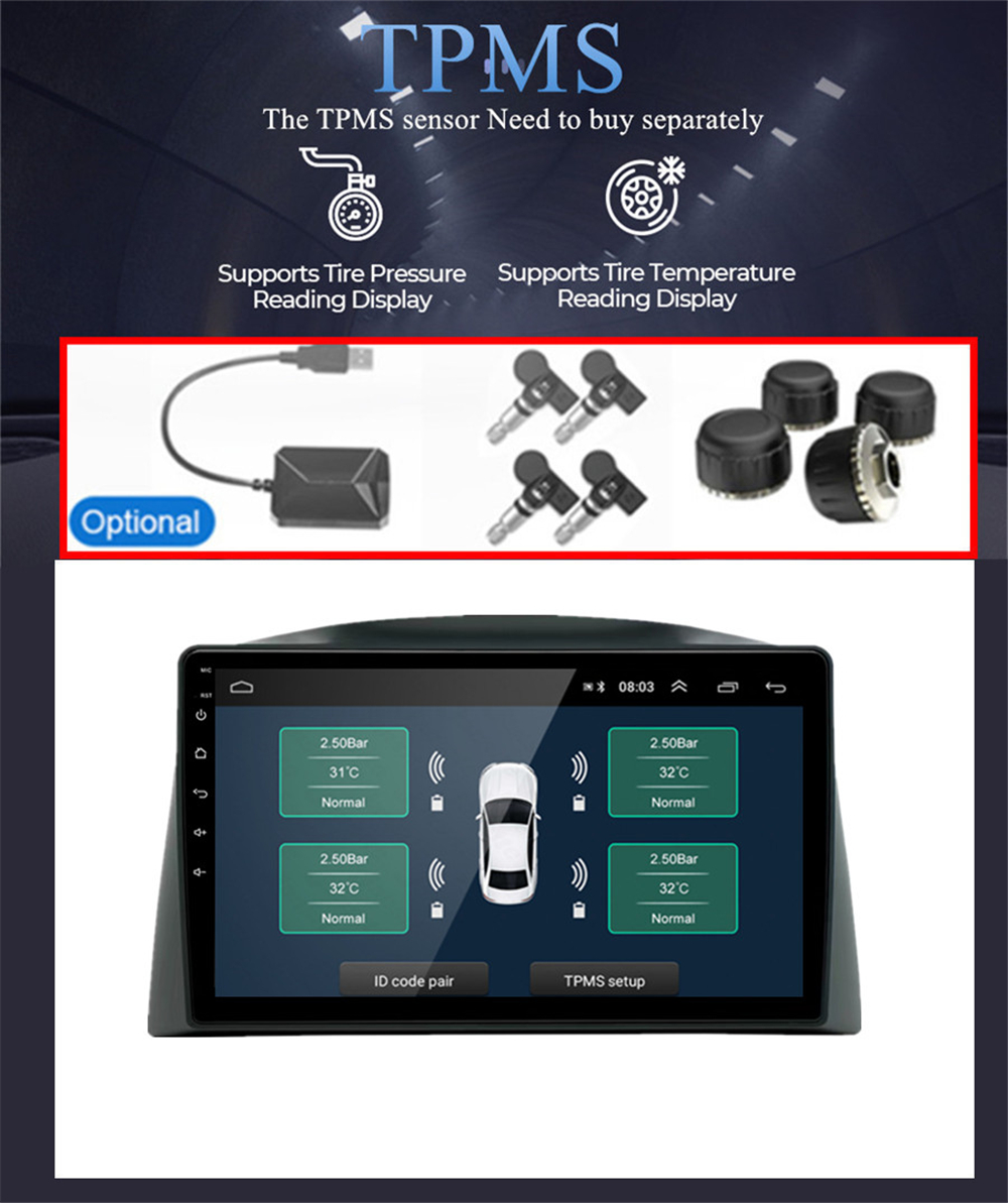 Additional | - Textbook: Could change font, font color, background color, bookmark, reading E-book while listening music - Photo Viewer: Support JPS, BMP, PNG, GIF etc. format. play by revolve, Powerpoint Support 4096*4096 Pixels - Wallpapers: 5 live wallpapers, 17 standard wallpapers, support DIY wallpaper from Gallery - APK Installer: Support Android Package installer - Support Torque Pro(OBD2 &Car): Yes, you can connect a Bluetooth/WIFI OBD2 Scanner Tool(Bluetooth version ≥ 4.2) to use this function - Support Mirror Link function: Yes, support WIFI screen mirroring from iPhone and android smartphone - Support TPMS: YES (Not Included) -Support Steering Wheel Control;Yes |