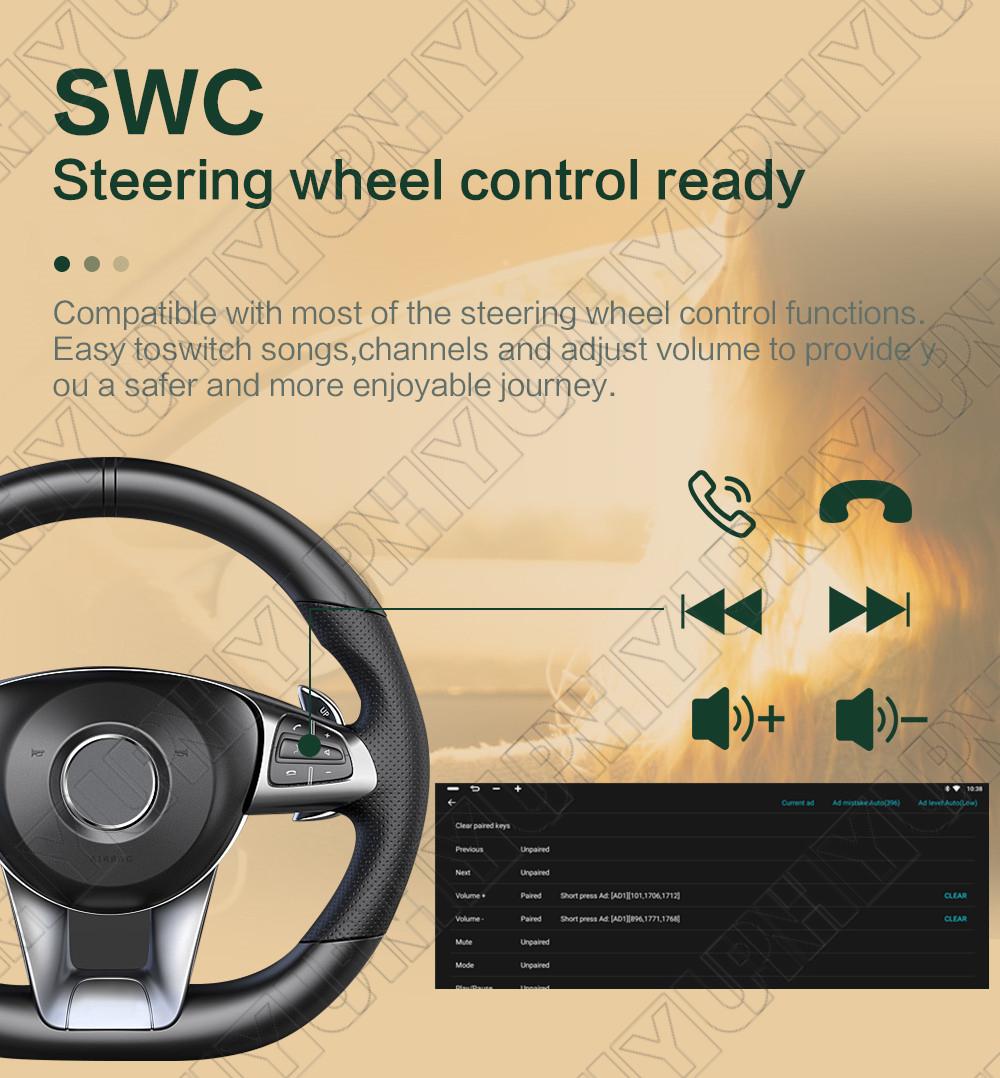 Additional | - Textbook: Could change font, font color, background color, bookmark, reading E-book while listening music - Photo Viewer: Support JPS, BMP, PNG, GIF etc. format. play by revolve, Powerpoint Support 4096*4096 Pixels - Wallpapers: 5 live wallpapers, 17 standard wallpapers, support DIY wallpaper from Gallery - APK Installer: Support Android Package installer - Support Torque Pro(OBD2 &Car): Yes, you can connect a Bluetooth/WIFI OBD2 Scanner Tool(Bluetooth version ≥ 4.2) to use this function - Support TPMS: YES (Not Included) -Support Steering Wheel Control;Yes |