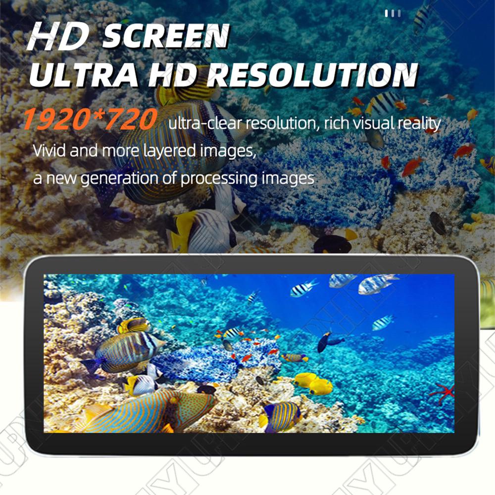 Display | - Touch Screen: Yes - Resolution: 1920*720 - Built-in Clock and Calendar: Yes, show real time and can use network-provided time- Main Menu Status Bar display: Can be changed to Music/Radio/BT-Stereo Player and Clock/Date/Week - Change Apps-Icon Position: Yes - Split screen:Yes Split screen feature enables you to use two applications at the same time. For example running Navigation with Music Player or Radio with Navigation at the same time. Optimum convenience for both the driver and passengers. |