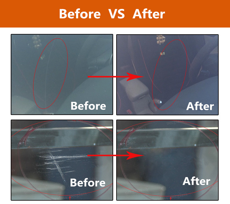 Easy to use,just mix powder with water and apply to the glass surface with the polishing felt to restore lightly scratched windows, mirrors,
