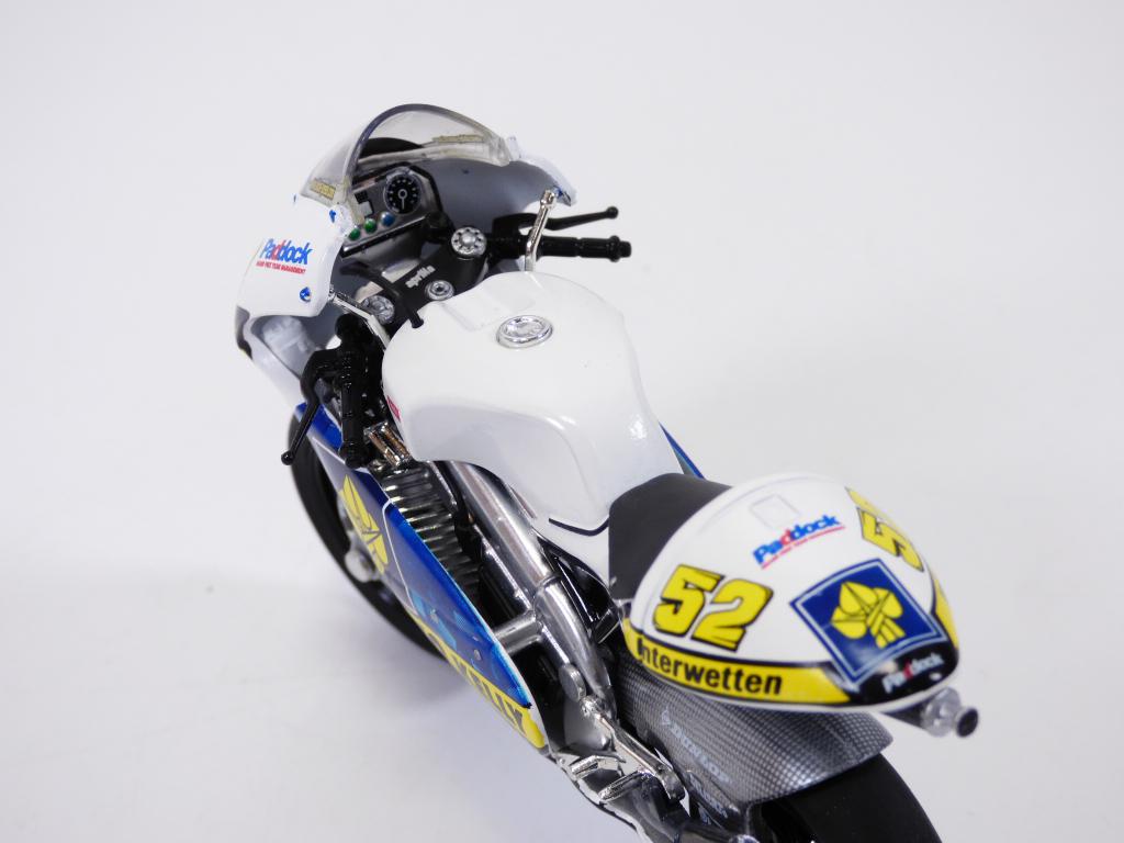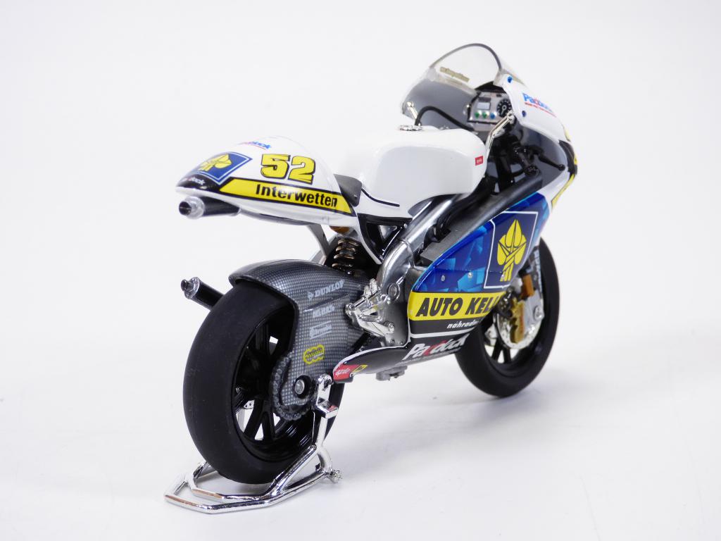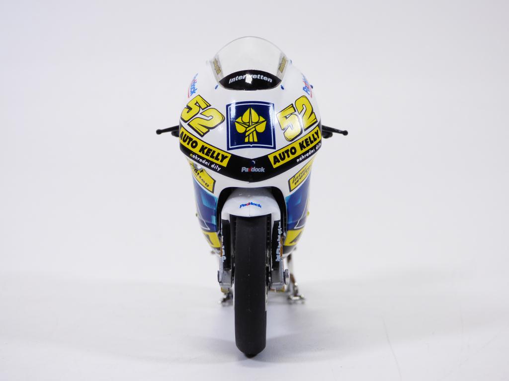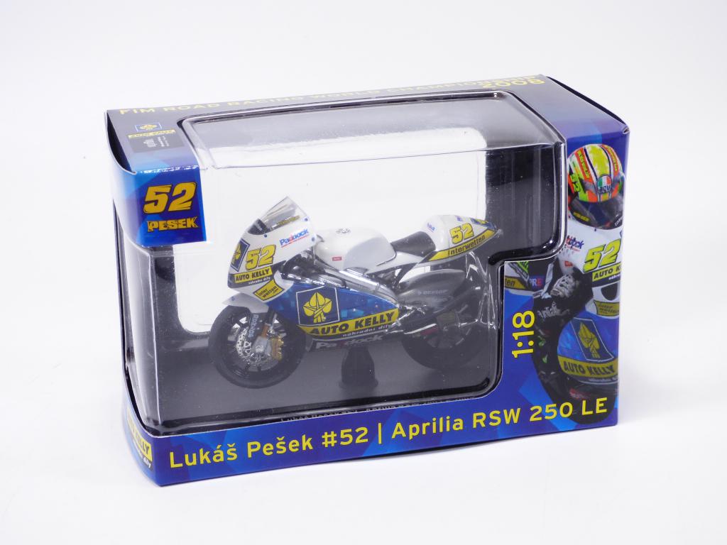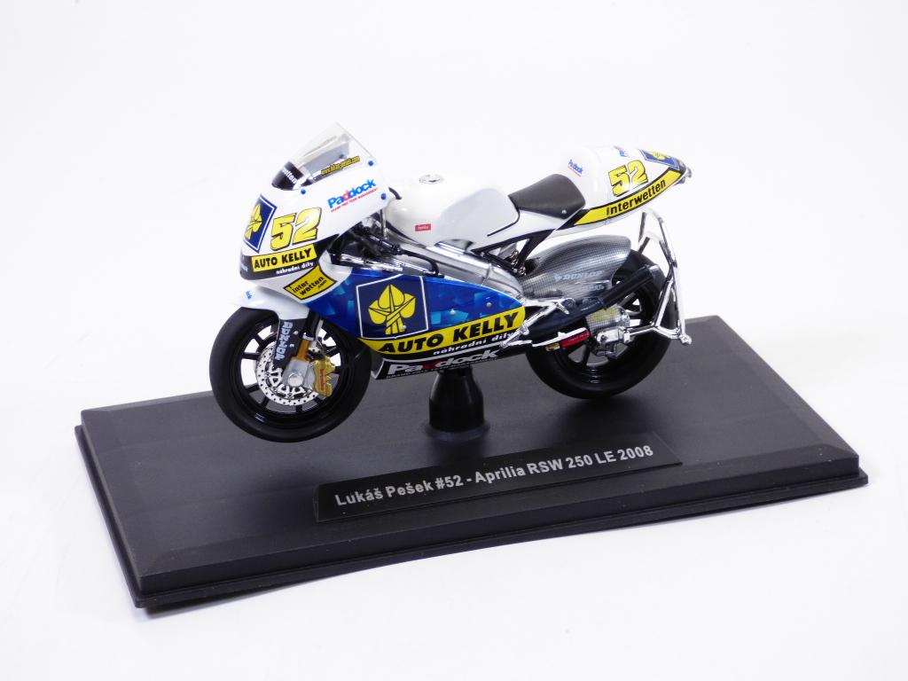 Moto APRILIA RSW 250 LE n°52 pilotée par Lukas PESEK sur le FIM Road racing 2008 à l'échelle 1/18