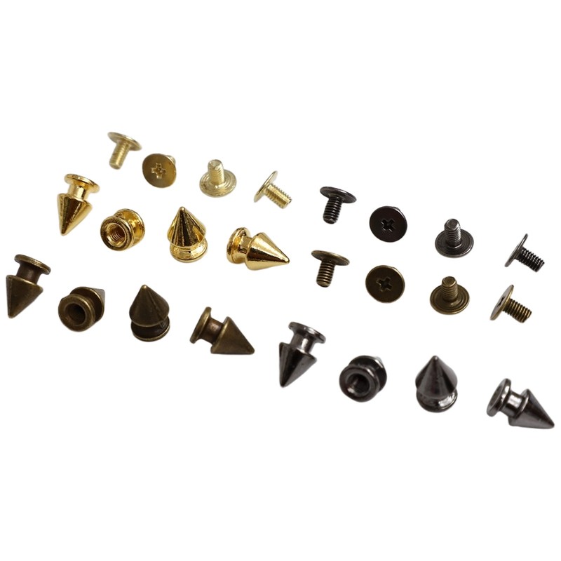The screwback design makes them easy to install on different materials, providing a convenient way to add a punk-style touch to your items.
