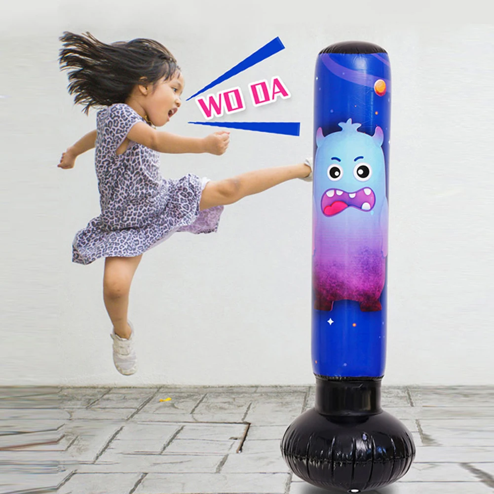 Kids Thickened Cartoon Monster Inflatable Punching Boxing Bag PVC Standing Sandbag Fitness Training Boxing Pillar Children Tumbler Column Toys