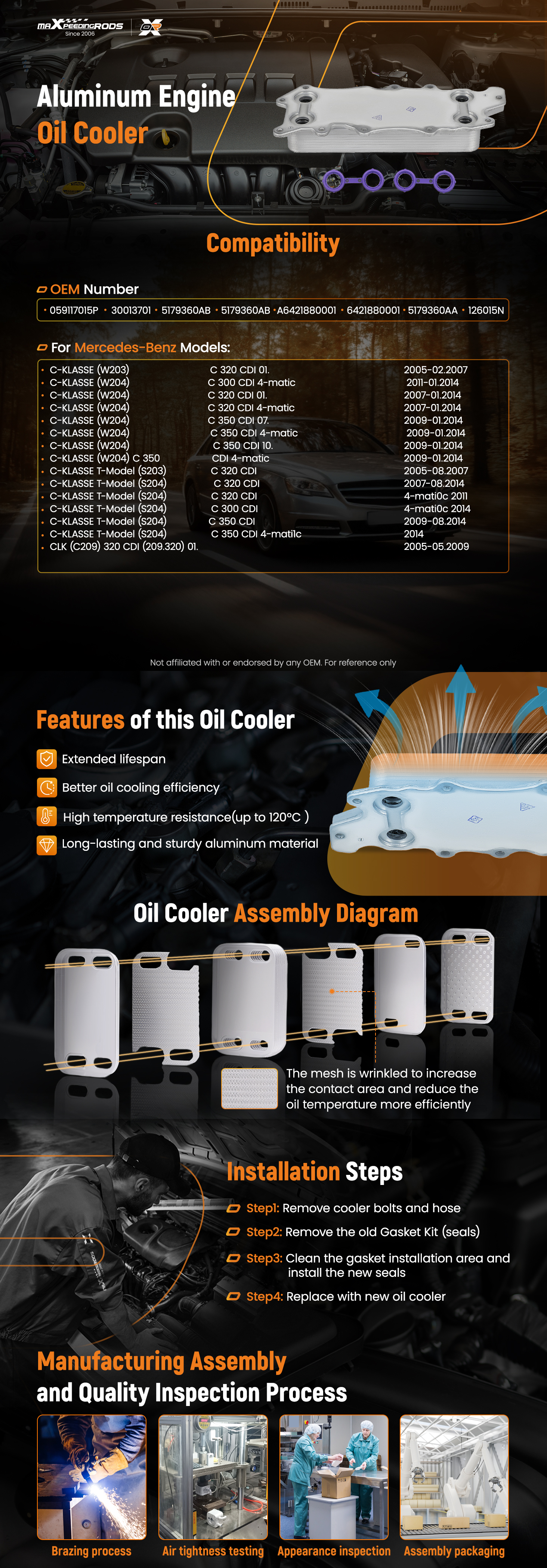 For MERCEDES-BENZ C-KLASSE (W204) C 320 CDI 01.2007-01.2014