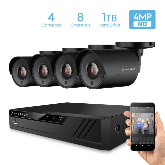 Amcrest 8-Channel UltraHD 4-Megapixel Video Security Camera System with Pre-Installed 1TB Hard Drive / 4 x 4-Megapixel Plastic Bullet Cameras / Easy Smartphone (iOS/Android) & Web-browser Access (MAC & PC) / VGA & HDMI Output / Backup to External Storage via USB