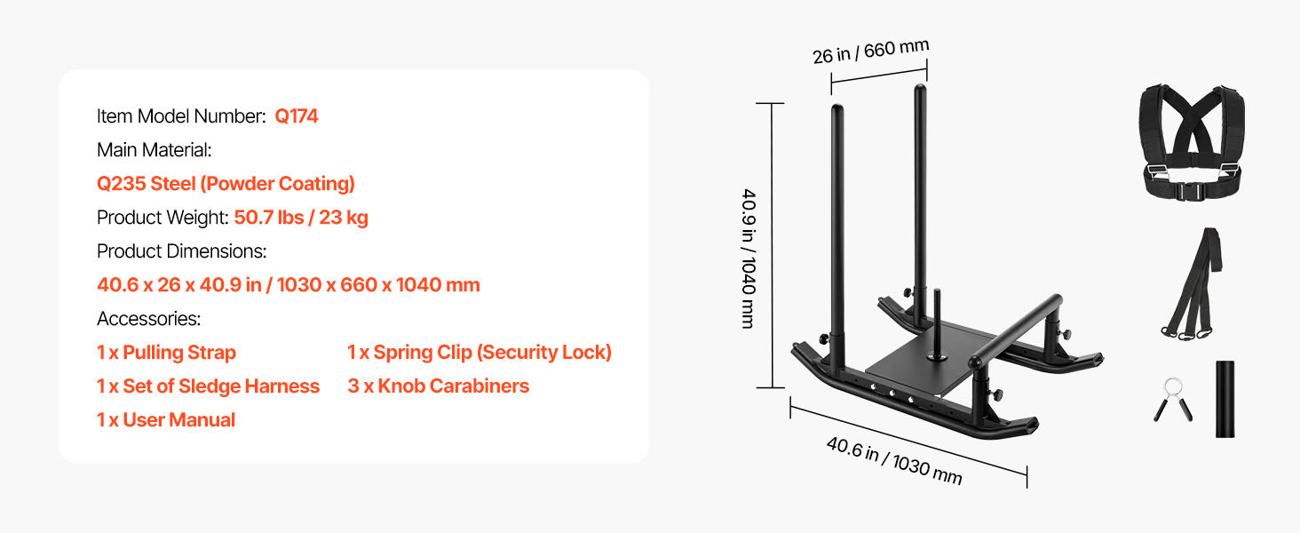 R: Sí, este producto viene con una variedad de accesorios, que incluyen 1 correa de tracción, 1 juego de arnés de trineo, 1 manual de usuario, 1 clip de resorte(bloqueo de seguridad) y 3 mosquetones.