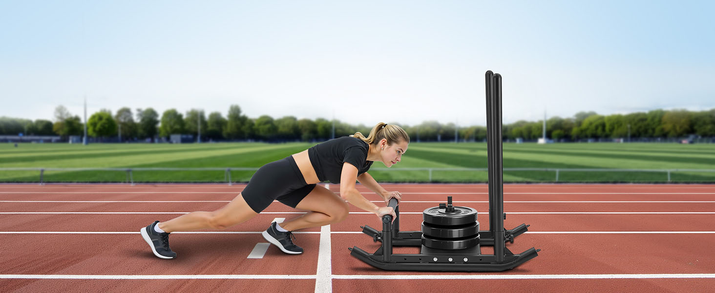 R: Puedes realizar diversos ejercicios tanto en interiores como en exteriores, como arrastres de trineo, caminatas inversas, sprints de trineo, movimientos laterales, estocadas y más.