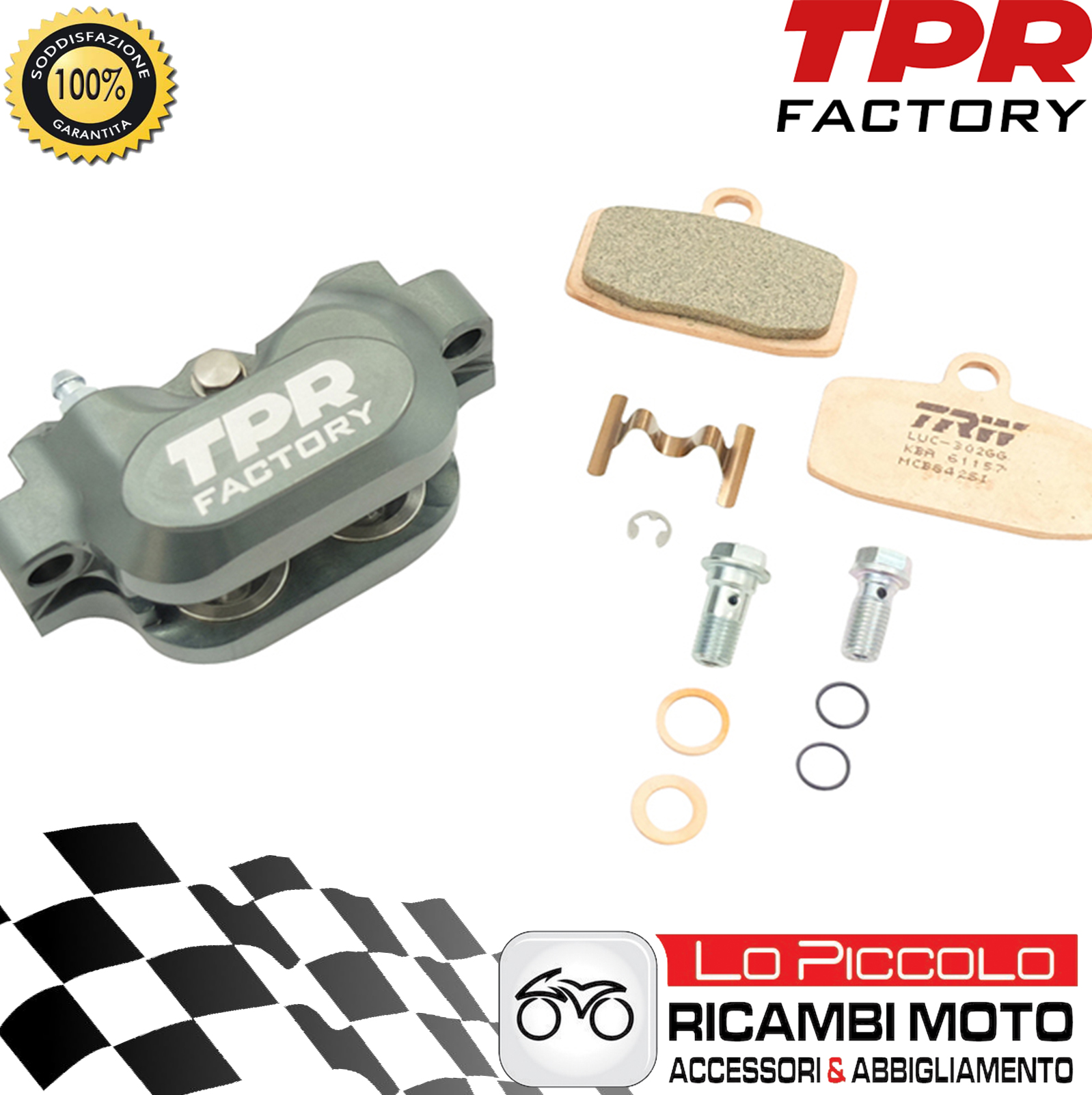 CODE: 99PFR0010 DESCRIPTION: BUILT IN FINE AERONAUTICAL LEAGUE IN VIONAL, WITH 84 MM FIXING DISTANCE AND RECTIFIED STAINLESS STEEL PISTONS, THE TPR FACTORY RADIAL BRAKE CALIPER IS COMPLETELY MADE FROM BULLET ON CNC WORKING CENTERS WITH ANODIC ANTICORROSIVE OXIDIZATION TREATMENT AND IS EQUIPPED WITH FITTINGS NECESSARY FOR ASSEMBLY OF PISTONS AND SEALS GUARANTEE MODULABILITY, PRECISION AND BRAKING POWER. TPR FACTORY RADIAL BRAKE CALIPER OVERHAUL KIT KIT 4 STAINLESS STEEL PISTONS FOR RADIAL BRAKE CALIPER TPR FACTORY SINTERED BRAKE PADS SCREW KIT M8 X 1 FOR FITTING Ø 10 CON WASHERS FOR TPR FACTORY CALIPER SCREW KIT M8 X 1 FOR FITTING Ø 8 CON O-RINGS FOR TPR FACTOR CALIPER COMPATIBLE WITH: FORMULA 8.1 PIT BIKE APPLICATIONS: KTM SX / SXS 85 OHVALE GP-0 |