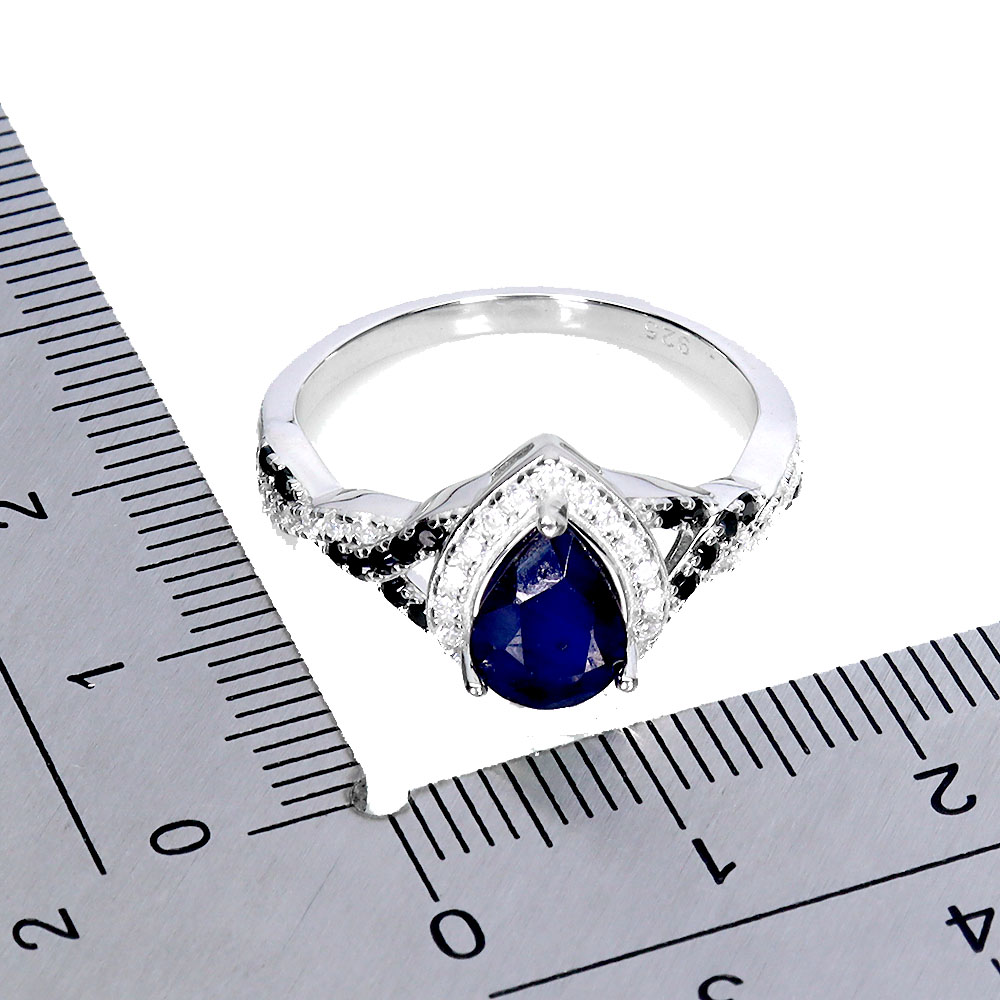 925 Sterling Silver Ring Pear Blue Sapphire 8x6mm Spinel Size 8 No USA Import Fees
