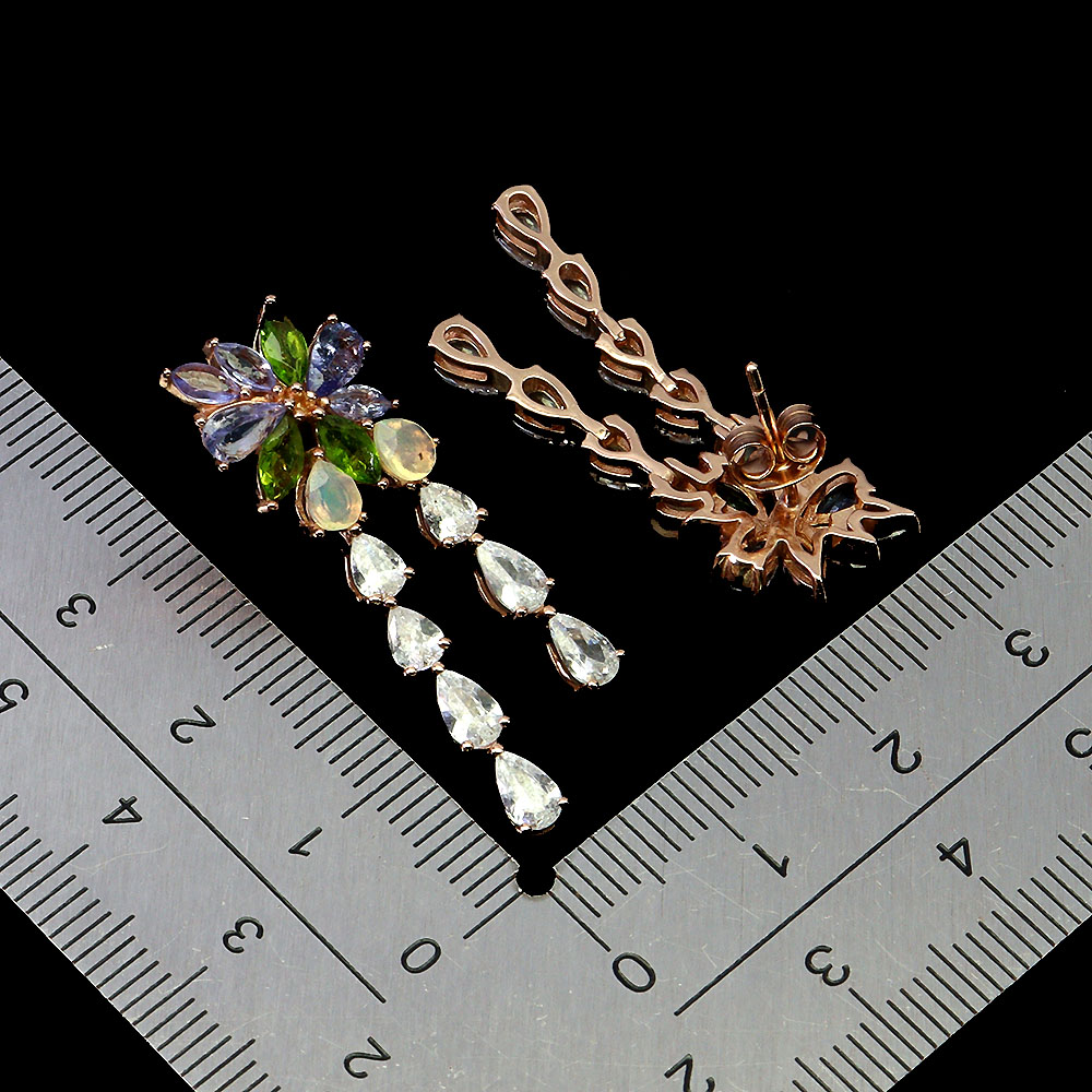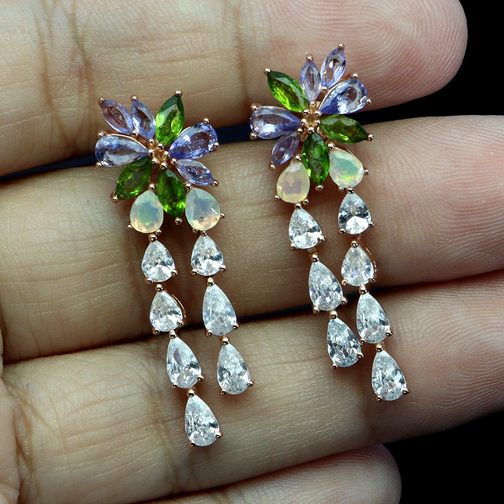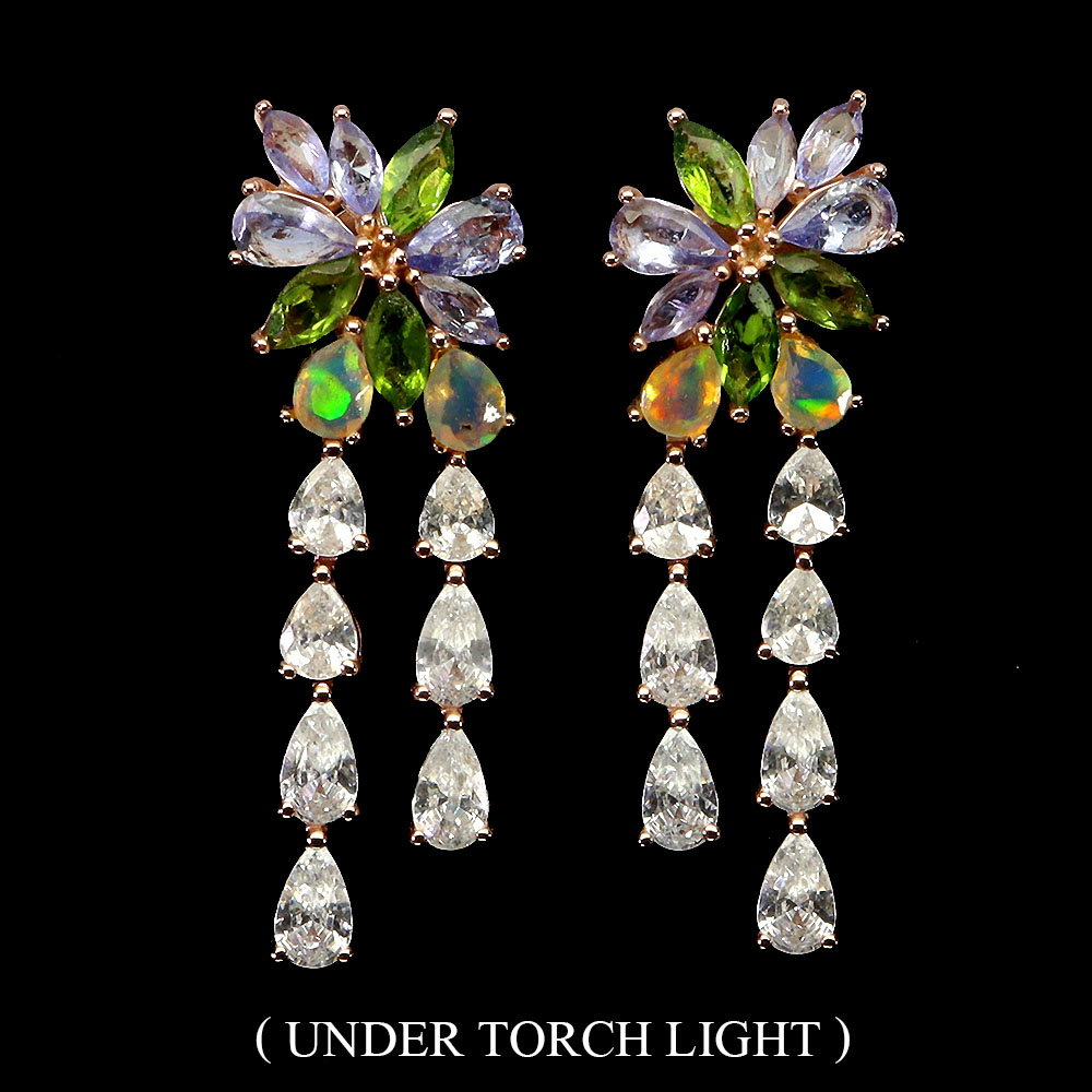 925 Sterling Silver Earrings Pear Tanzanite Fire Opal Gemstone No USA Import Fees
