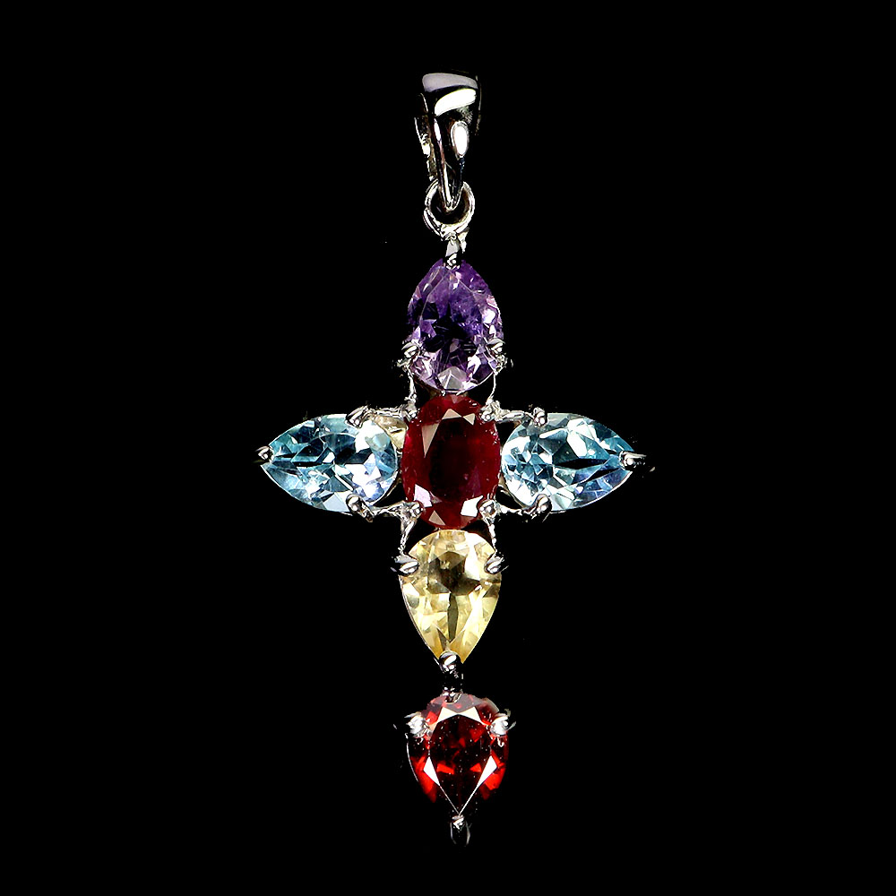 925 Sterling Silver Pendant Oval Ruby Amethyst Citrine Cross No USA Import Fees
