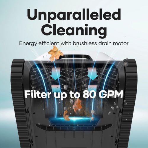 Experience unparalleled cleaning performance with the Aiper Scuba N1, a customizable cordless robotic pool cleaner designed for both above-ground and in-ground pools up to 1600 sq.ft (150m²), 50ft (15m) in length. The brushless drain motor ensures prolonged energy efficiency, cleaning and filtering up to 80 GPM (300LPM). Caterpillar treads provide superior mobility, effortlessly tackling various terrains and obstacles. Utilizing WavePath Navigation Technology 2.0, it adapts to your pool's natural flow, maximizing cleaning and battery performance. Choose from four cleaning modes, including the innovative Periodic Cleaning for regular maintenance. Explore customizable upgrades like the efficient Charging Dock and Solar Panels. Elevate your pool cleaning experience with the Scuba N1, ideal for large pools and hassle-free maintenance.