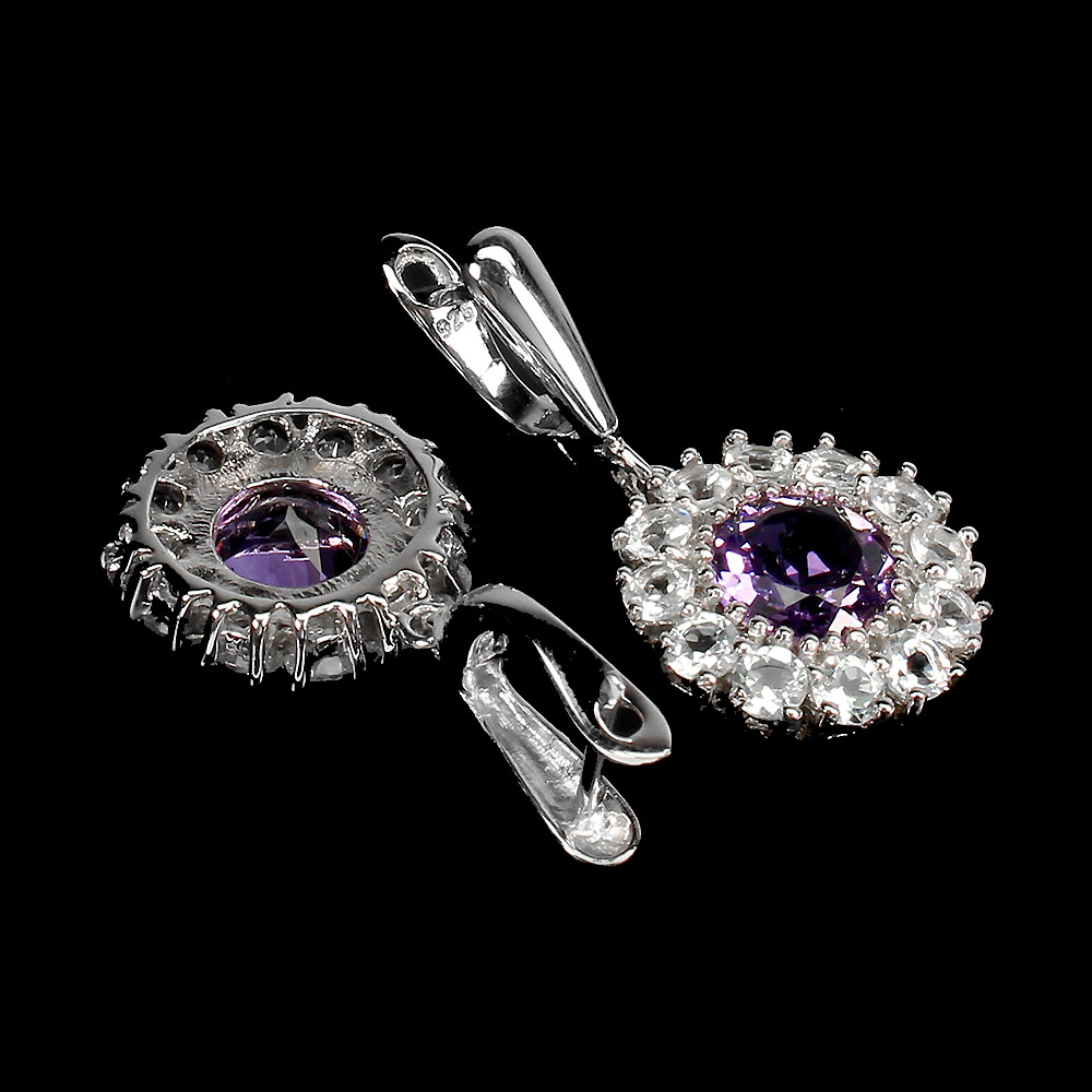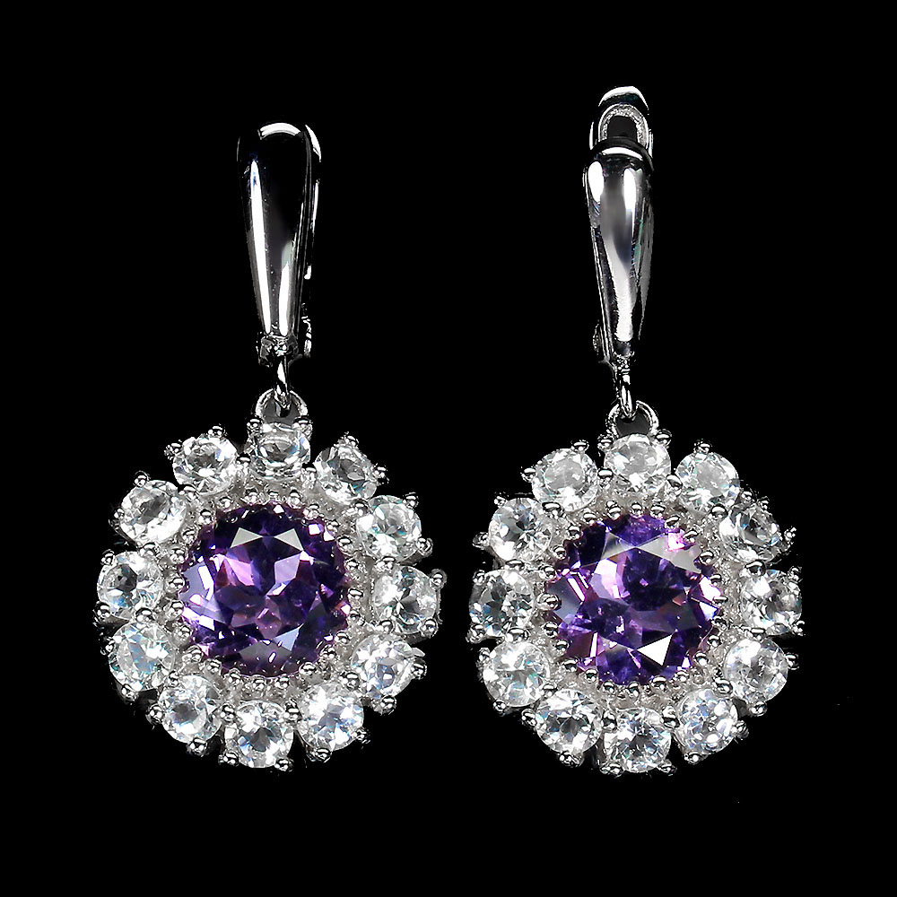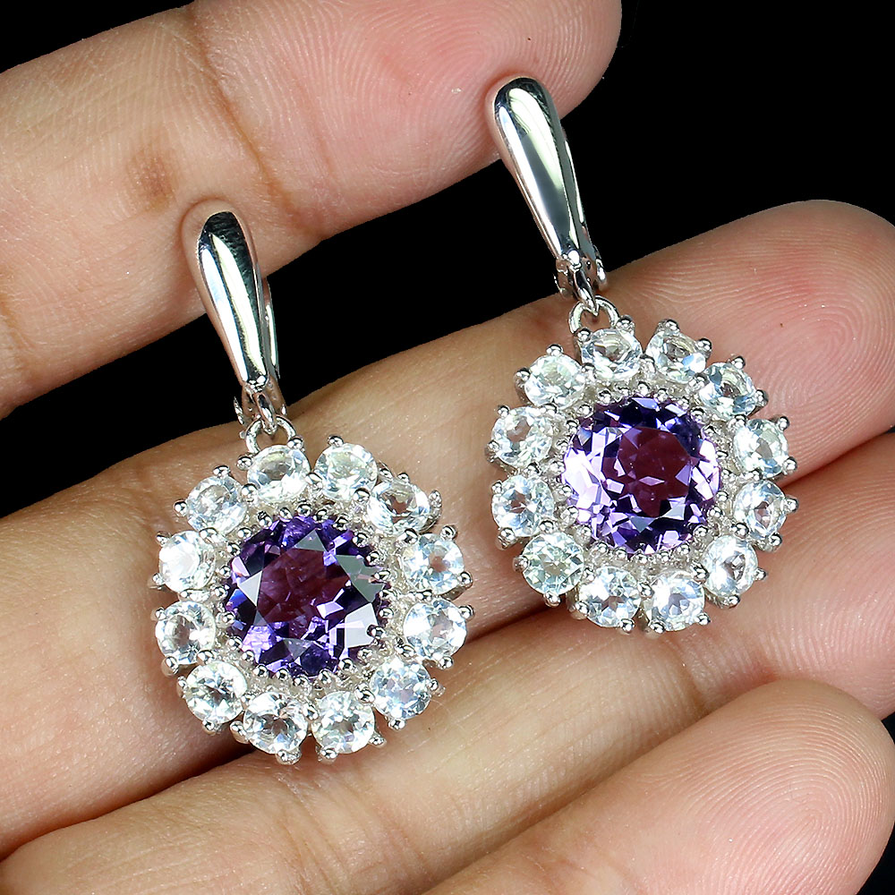 925 Sterling Silver Earrings Round Amethyst Topaz Gemstone No USA Import Fees