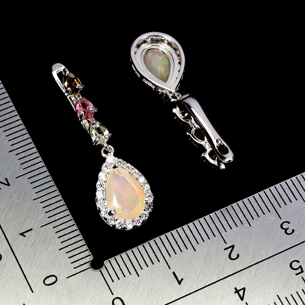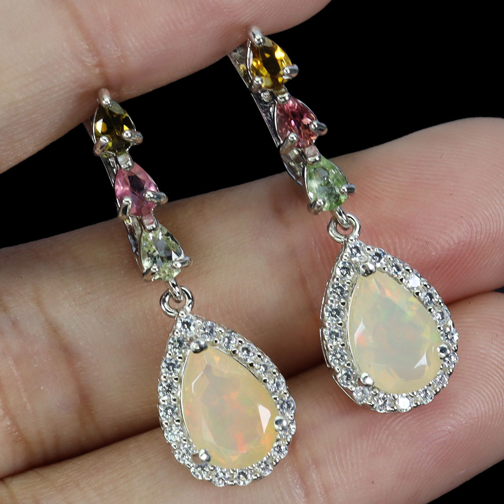 925 Sterling Silver Earrings Pear Fire Opal 9x6mm Tourmaline No USA Import Fees