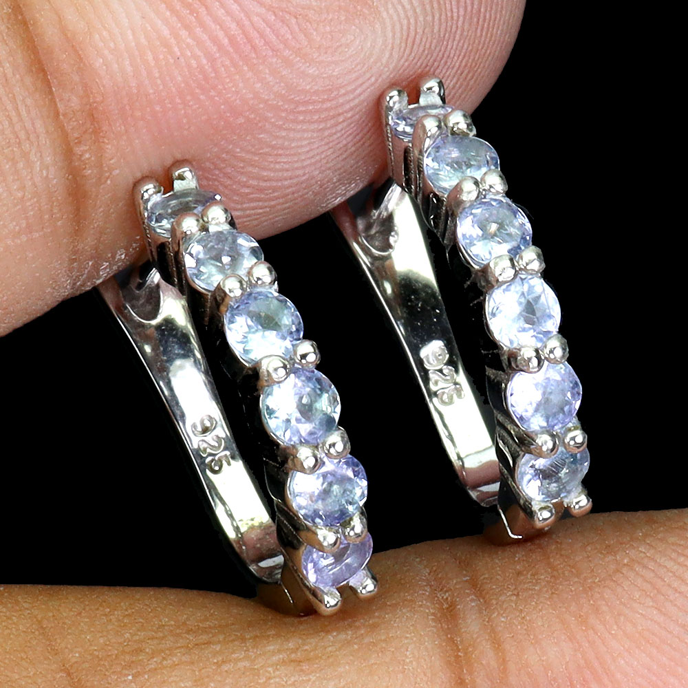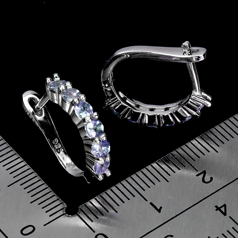 925 Sterling Silver Earrings Round Tanzanite Natural Gemstone No USA Import Fees