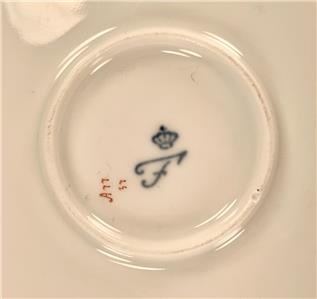 - This Design Was Originally Made By Furstenberg Between 1840-1850, Was Then Reintroduced In 1913, And Is Still Being Manufactured To The Present Day - The Blue "F" Backstamp Without Full Company Name On The Back Dates This Piece Between 1966-2006 - Additionally, There Is A Handwritten Letter And Number Code (Serial Number) On The Back In Red (A77 37) - This Piece Is Most Likely Vintage, Because It Is No Longer Available On The Furstenberg Website (Today's Casseroles Have A Flared Base, A Curved Profile And Handles That Are Angled Upwards - These Features Are In Contrast To This Bowl's Lightly Tapered Base With Shallow Foot, The Straight Edge Profile And Horizontal-Pointed Handles)