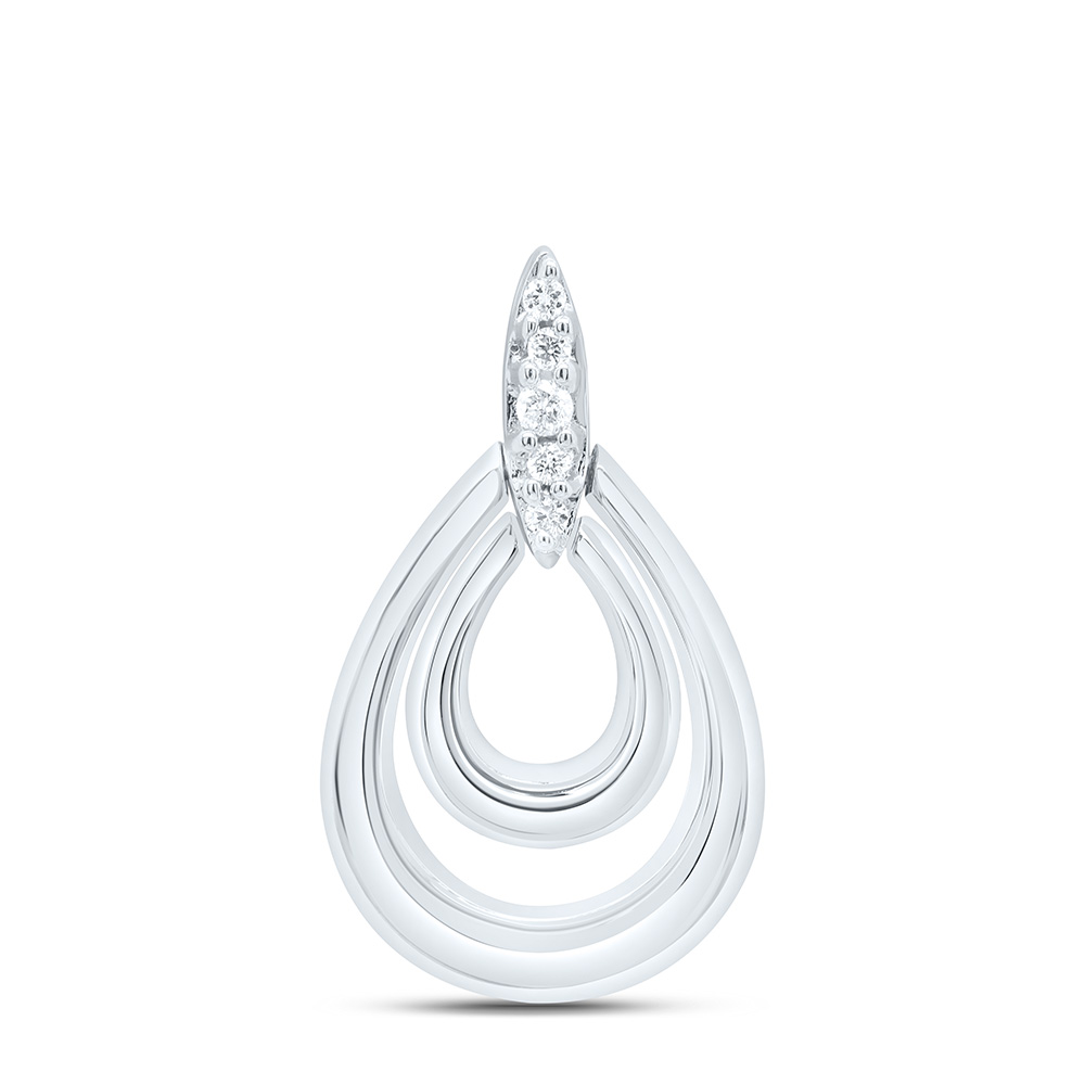 This eye-catching Diamond Double Teardrop Pendant is crafted in 925 Sterling Silver and shimmering White Diamond, ensuring sparkle from every angle. Radiant with 0.05 ct. t.w. of Diamond, this pendant is polished to a lustrous shine. Exclusive style has a well built frame to withstand everyday wear and tear. The Diamond are secured in Prong setting close together, making the overall appearance larger and lustrous. A matching bail to compliment this pendant. These are all 100% genuine Round cut Diamond with matching clarity and color throughout. This Pendant measures 21mm (Including the Bail) long and weighs approx. 2.77 gr. This style would make a perfect addition to your jewelry collection.