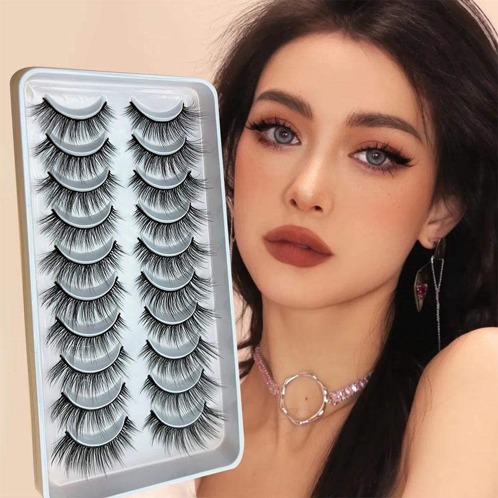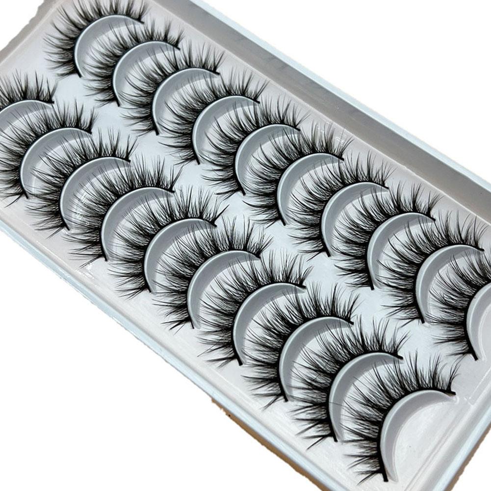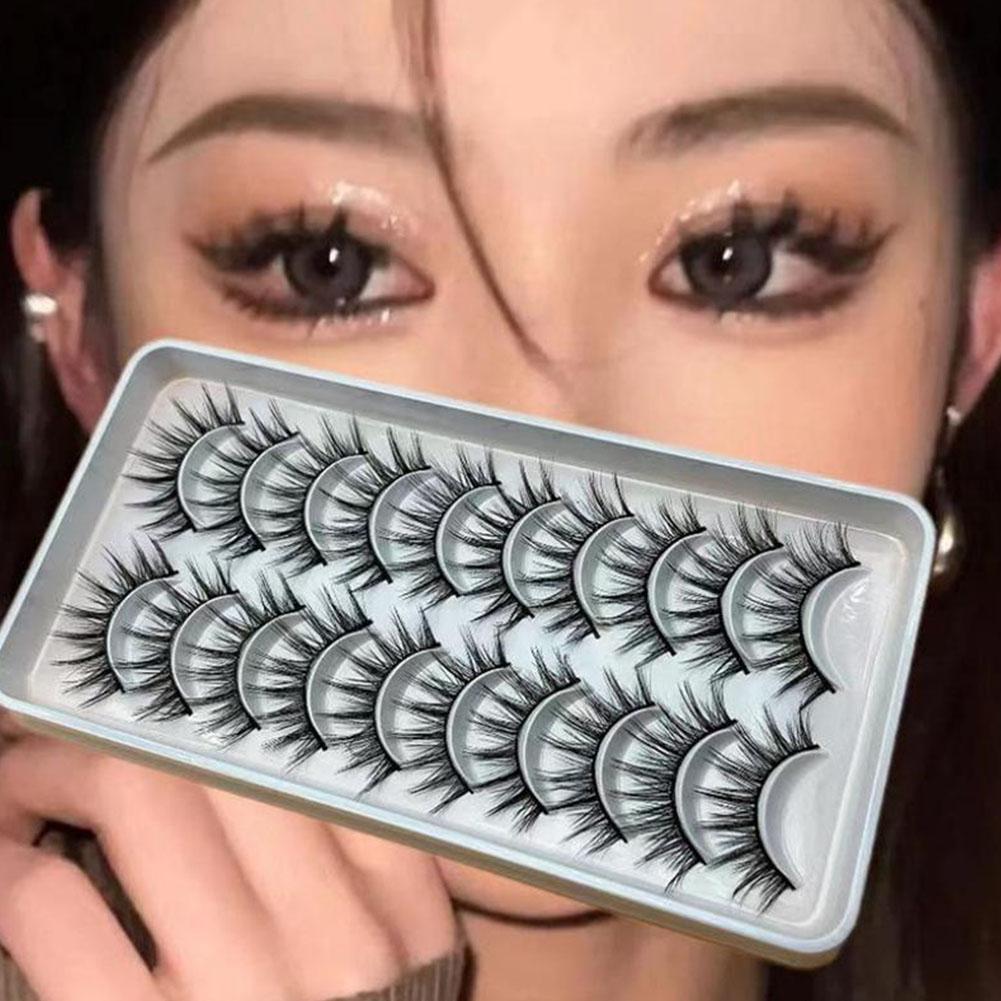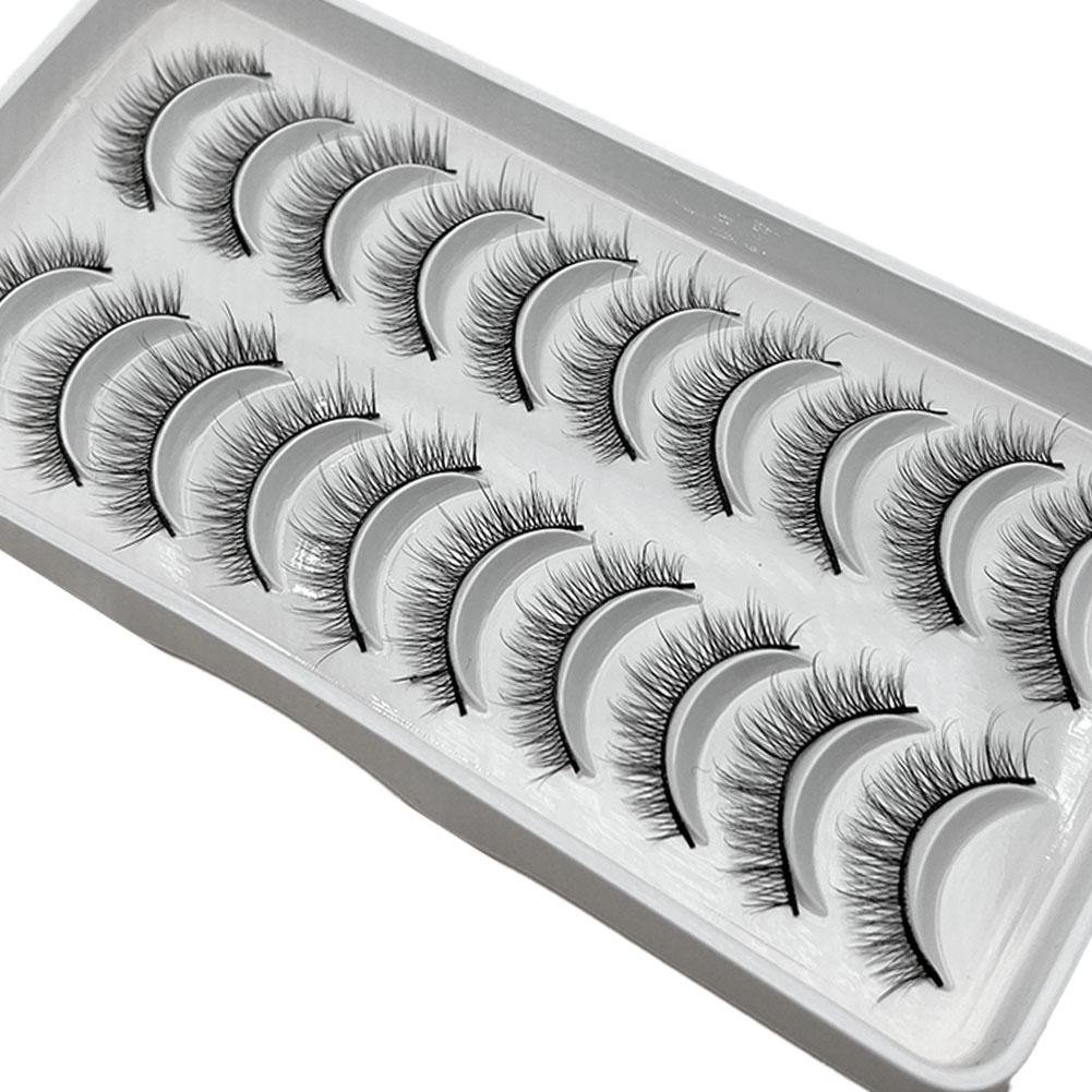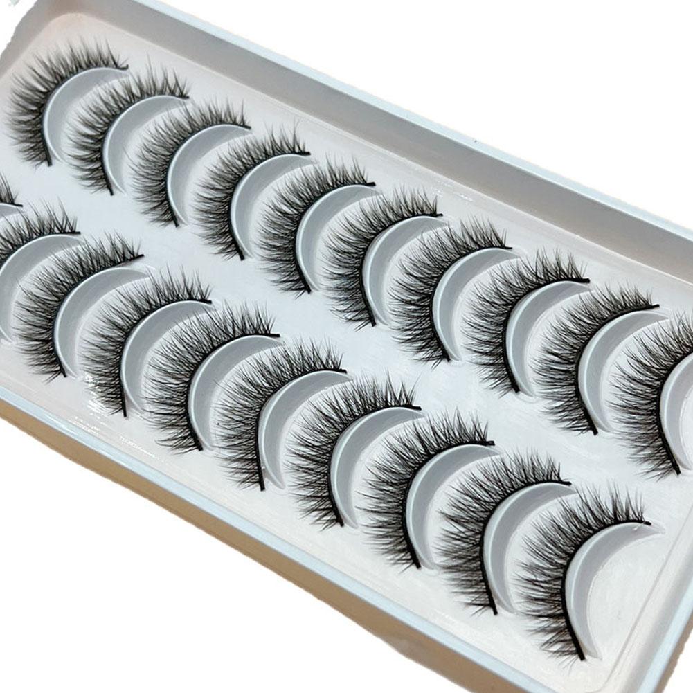 Measure 3/4 of the width of the eyelash line. To be more natural, cut off the longer part, apply glue on the roots, dry for 10-15 seconds, and then stick to the roots of the eyelashes.