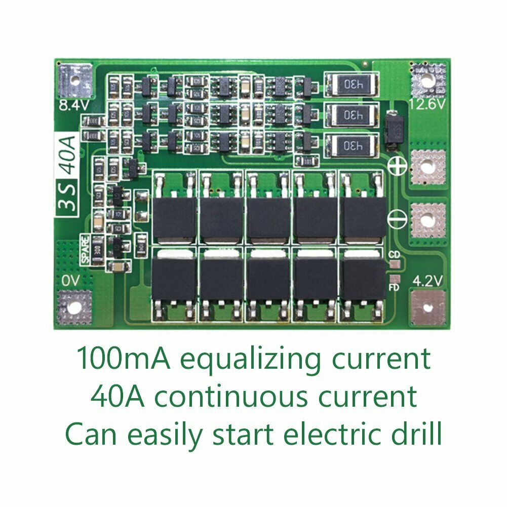 Ideal 3S 40A 3S40A li-ion lithium battery 18650 charger protection board BMS PCB 11.1V 12.6V cell charging protecting module with balance.