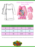 - COMFORTABLE & STYLISH - These night gown pajamas are made from high-quality 100% polyester fabric that is flame resistant for your child's safety. Each gown contains double stitched hems, a taped collar, ruffle details, and colorful sublimated graphics.