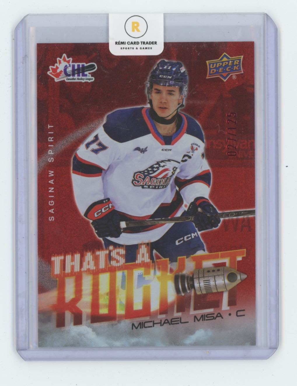 2024-25 Upper Deck CHL That's A Rocket Michael Misa #TR-19 Spirit Saginaw