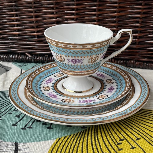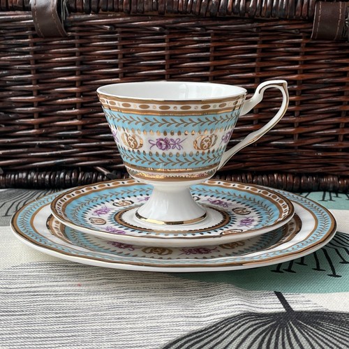 🌸 Royal Pembroke & Edwards Turquoise Bone China Trio