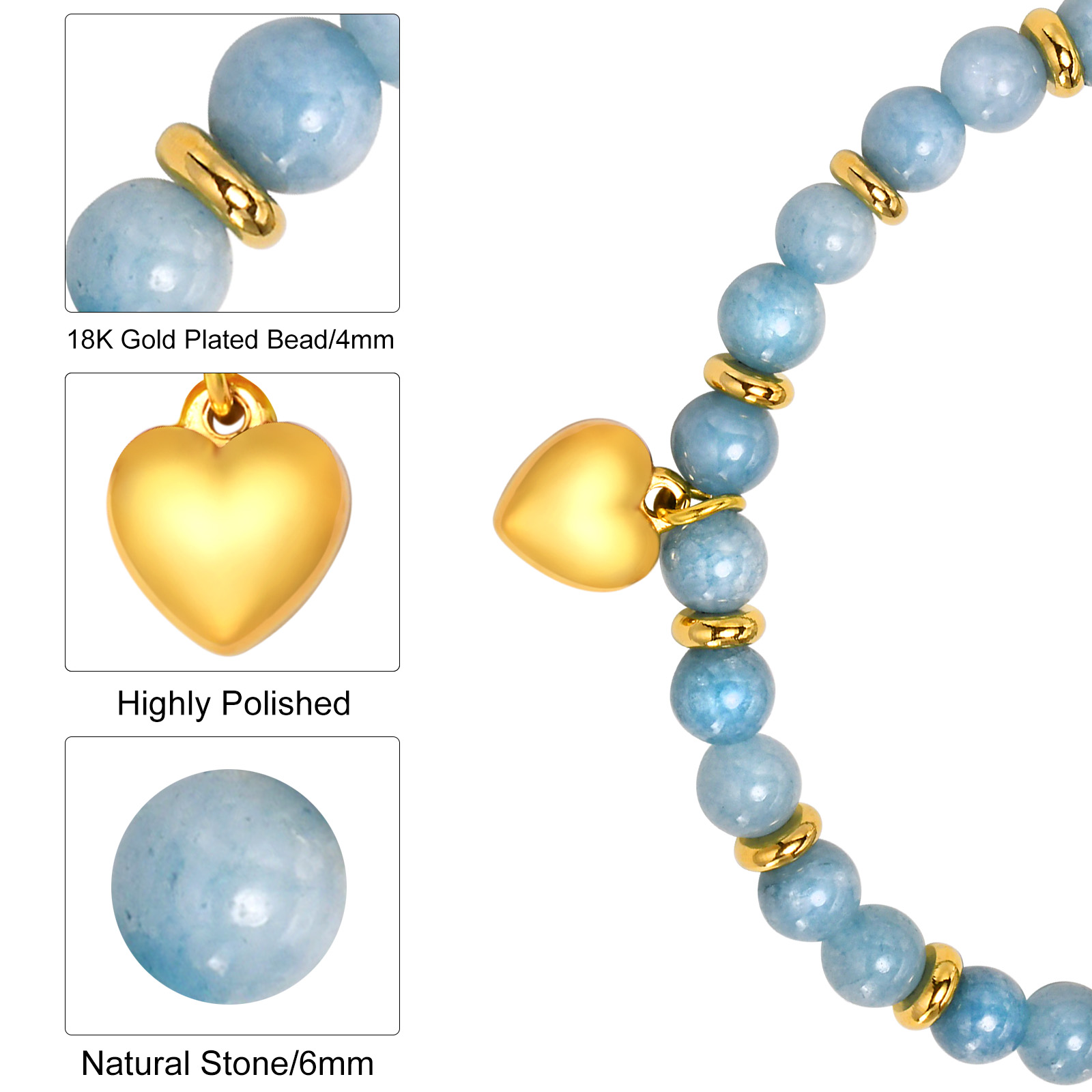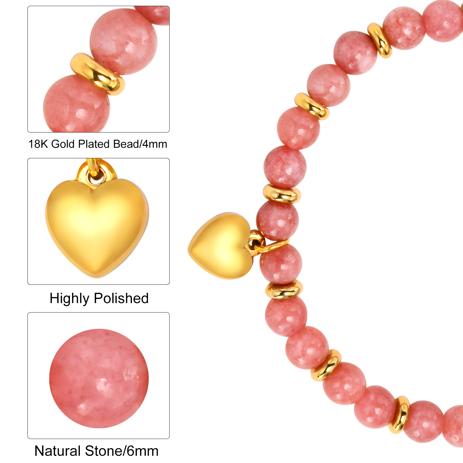 18K Gold Plated Stainless Steel Beads: The 18K gold plated beads made of high-quality stainless steel ensure durability and a luxurious shine.