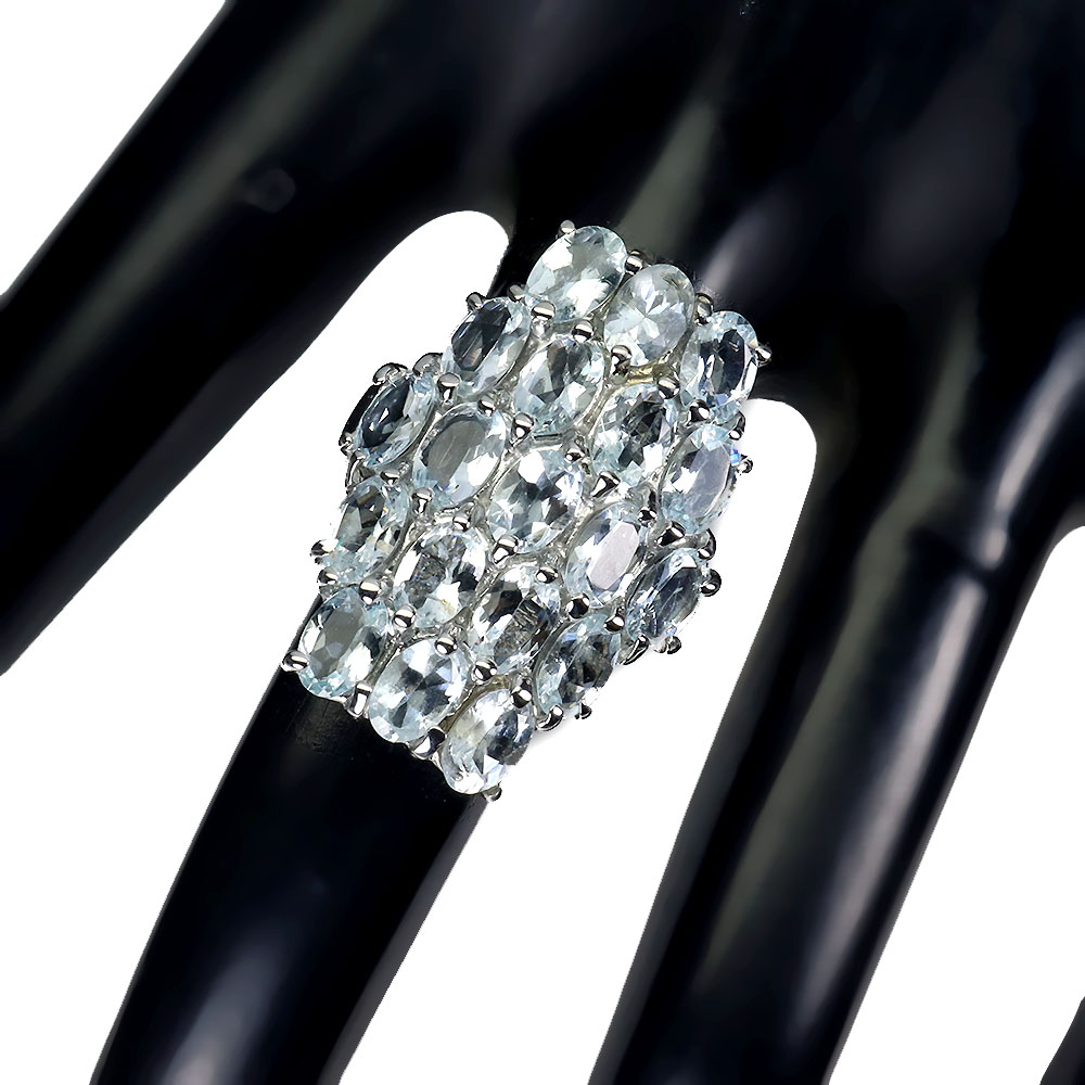 Unheated Oval Aquamarine 6x4mm 14K White Gold Plate 925 Sterling Silver Ring 7