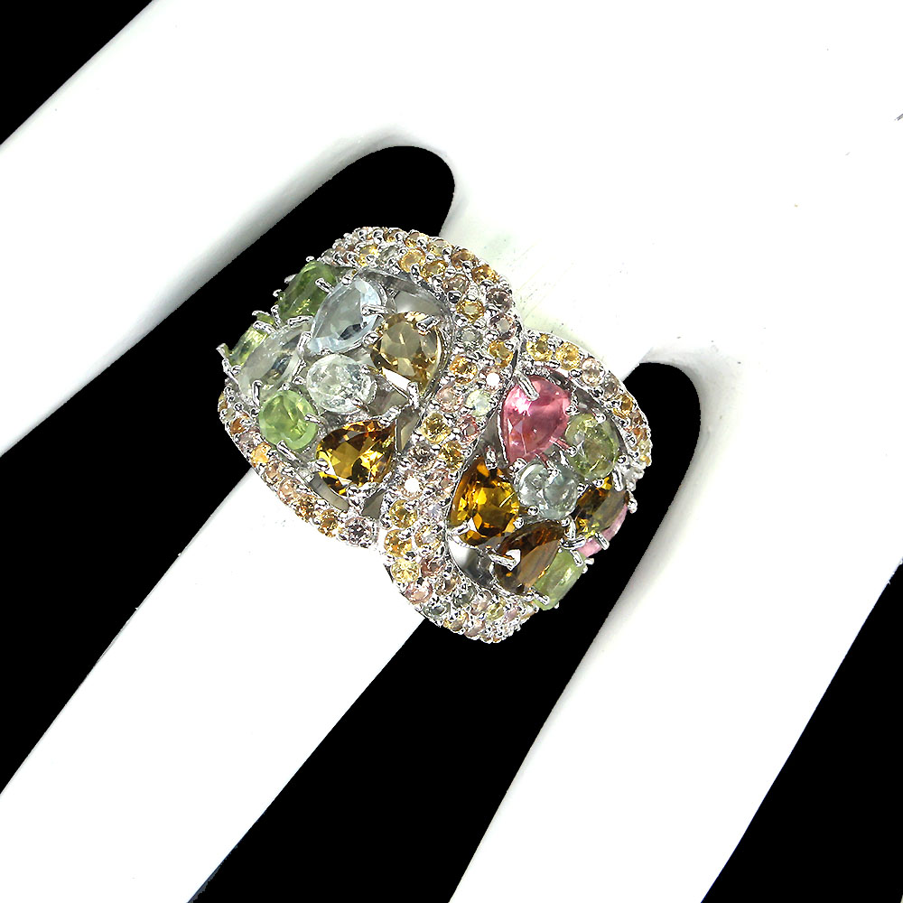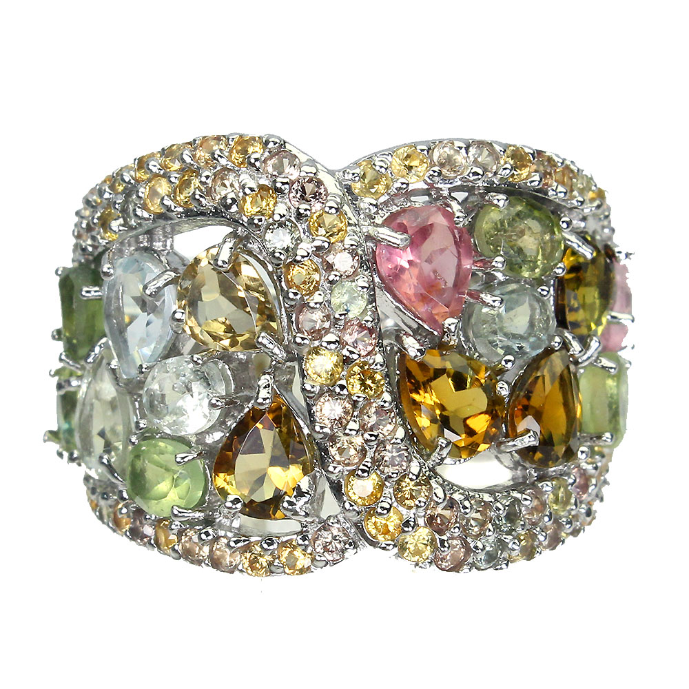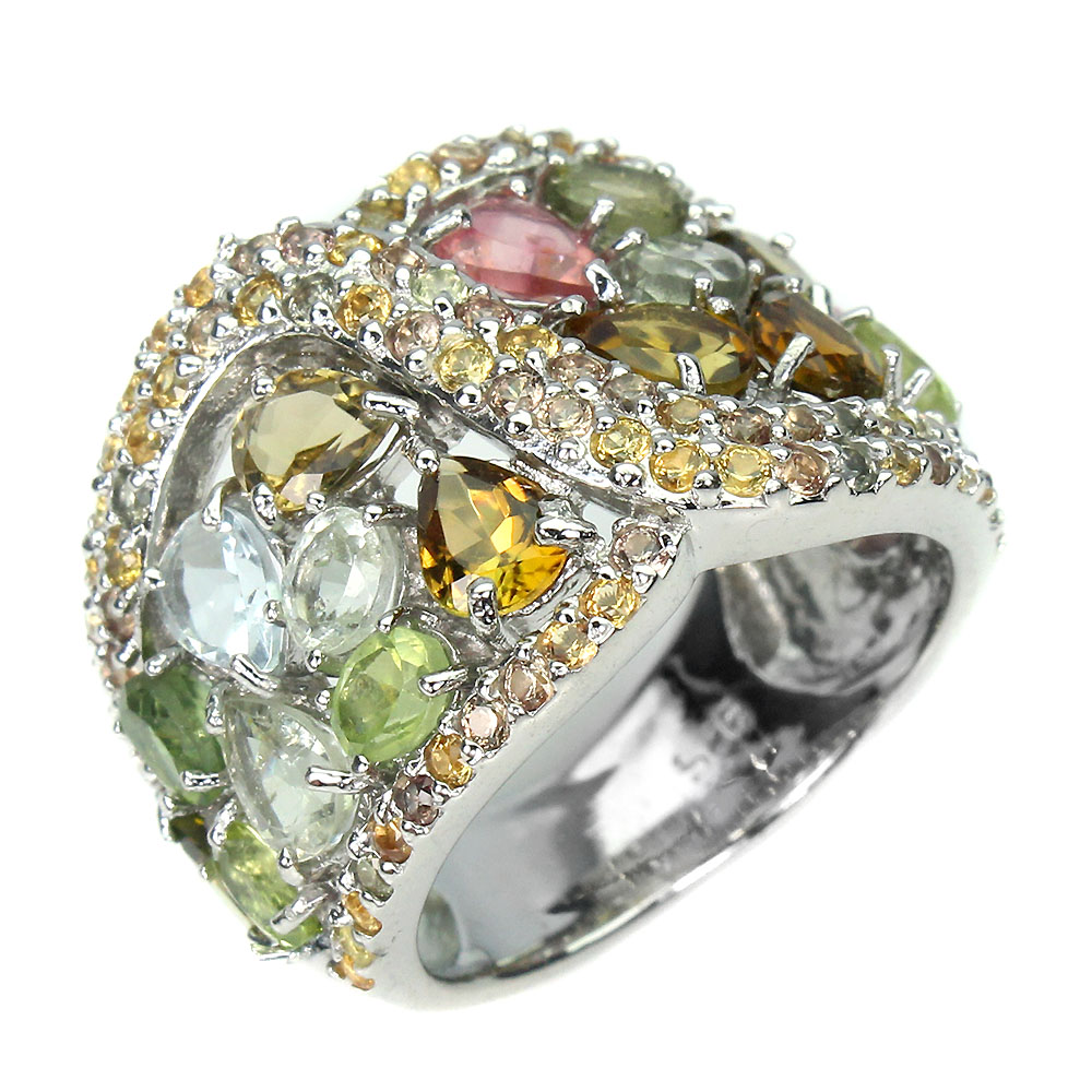 Unheated Pear Tourmaline Multi Color 5x4mm Sapphire 925 Sterling Silver Ring 7.5