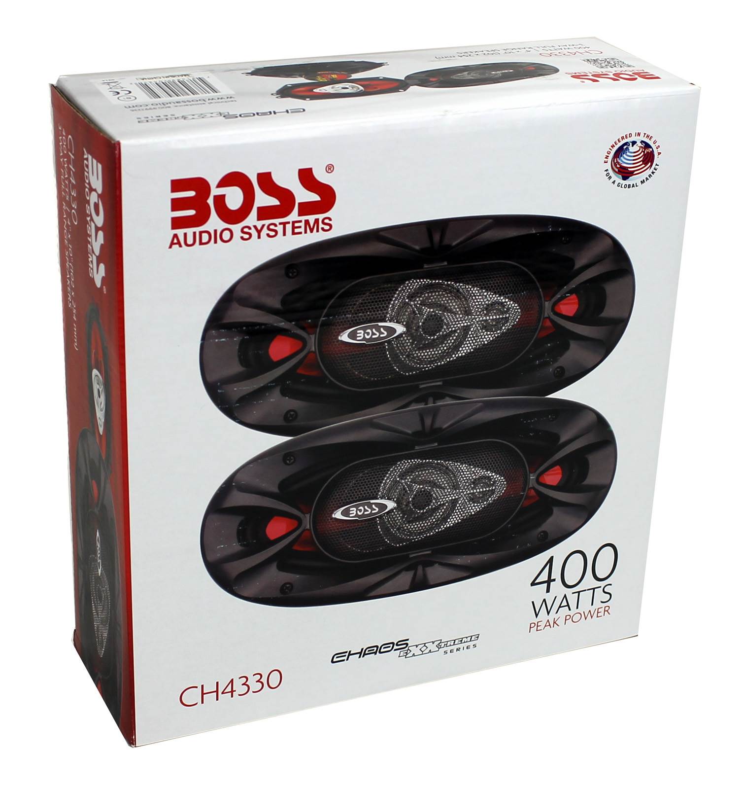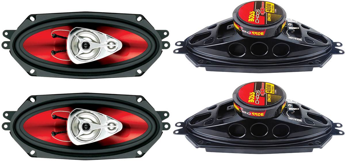 The Boss 4330 4x10" 3-Way 400W CHAOS Car Audio Stereo Speakers can handle 400 Watts of MAX power per pair, and 200 Watts of RMS power per pair. They feature a 1" high-temperature aluminum voice coil, a poly injected cone with foam surround and a stamped steel basket. Upgrade your factory speakers with the BOSS 4330 4x10" 3-Way 400W CHAOS Car Audio Stereo Speakers!
