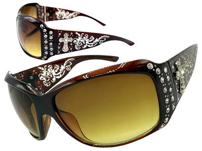 - Couleur du cadre: Monture marron ornée de strass étincelants rehaussés d'une croix argentée, d'un parchemin de botte gravé au laser et de minuscules clous argentés.