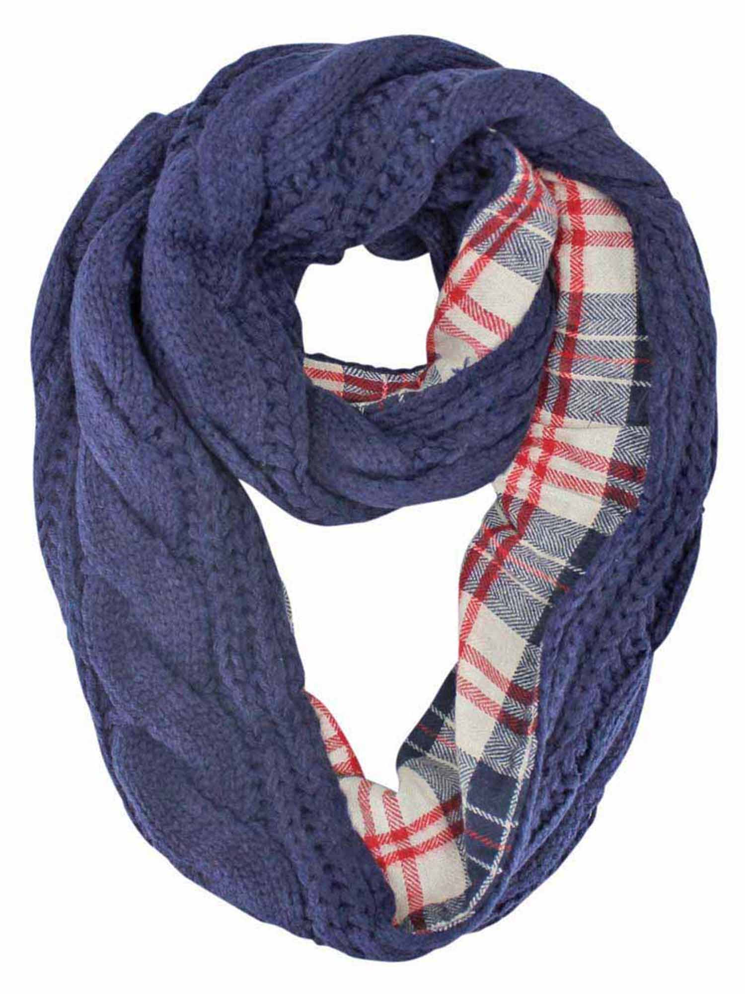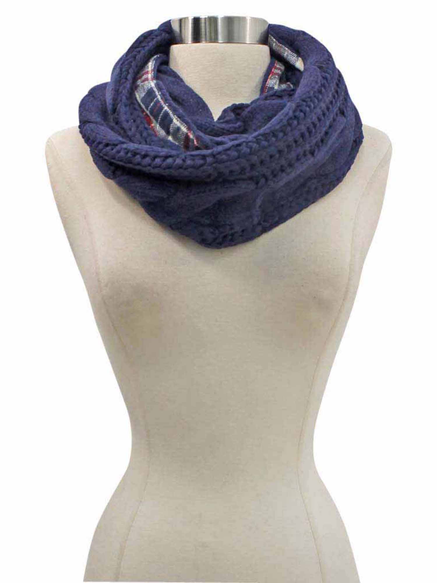 The exterior of this infinity scarf is knit in a classic cable stitch.