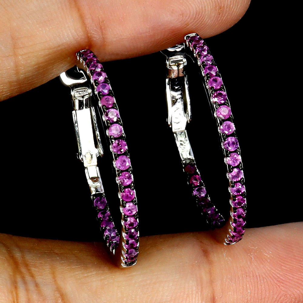 925 Sterling Silver Earrings Pink Sapphire Round Diamond Cut Gemstone Jewelry