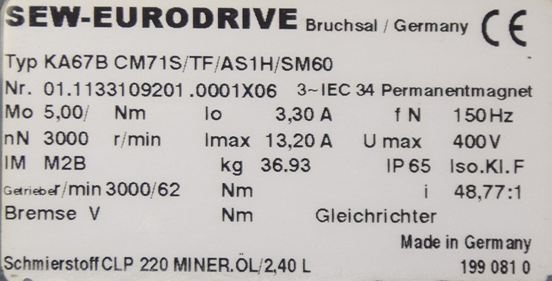 SEW Eurodrive KA67B CM71S/TF/AS1H/SM60