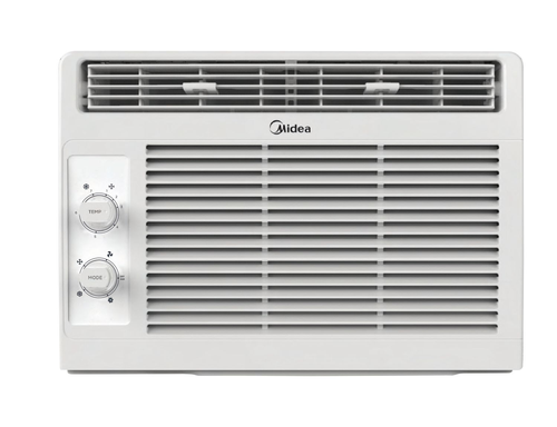 Midea MWMW050CM1A 5000 BTU Mechanical Window Air Conditioner. Midea’s easy to install 5,000 BTU Window Air Conditioner cools rooms up to 150 sq. ft. in size. Quickly cool down your space on hot days and enjoy restful sleep with the Sleep Mode function that operates quietly through the night.