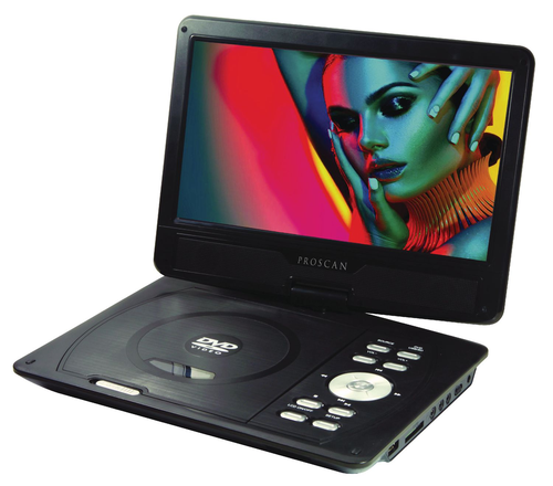 Watch your favorite movies on the go with the Proscan PDVD1030 10 inch Portable DVD Player. The portable DVD player plays back DVDs, CDs as well JPEGs and MP3 files. Its compact size lets you place it in your vehicle and view movies whilst you drive. You can also play music and view photos on this 10" TFT LCD DVD player with speakers. The swivel screen lets you change the angle to suit to so you can view it from your place of comfort. The bright LCD screen delivers sharp and crisp images in high quality. The Proscan DVD player comes with an AC car adapter. The built in SD/MMC/USB 1.1 card reader lets you play movies or photos using memory sticks. This portable swivel screen DVD player has a built-in rechargeable lithium polymer battery for better performance and durability.