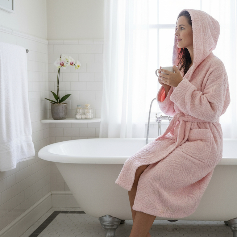 Style and sophistication for your moments of relaxation with Salvador, the bathrobe from Gabel 1957. Made of soft, solid-colored jacquard terrycloth in pure cotton wool. Featuring a vibrant, enveloping color palette, the bathrobe features a practical hood with a soft, enveloping feel. Cotton wool guarantees softness and durability: Salvador is an excellent choice for anyone seeking a high-quality bath towel collection.