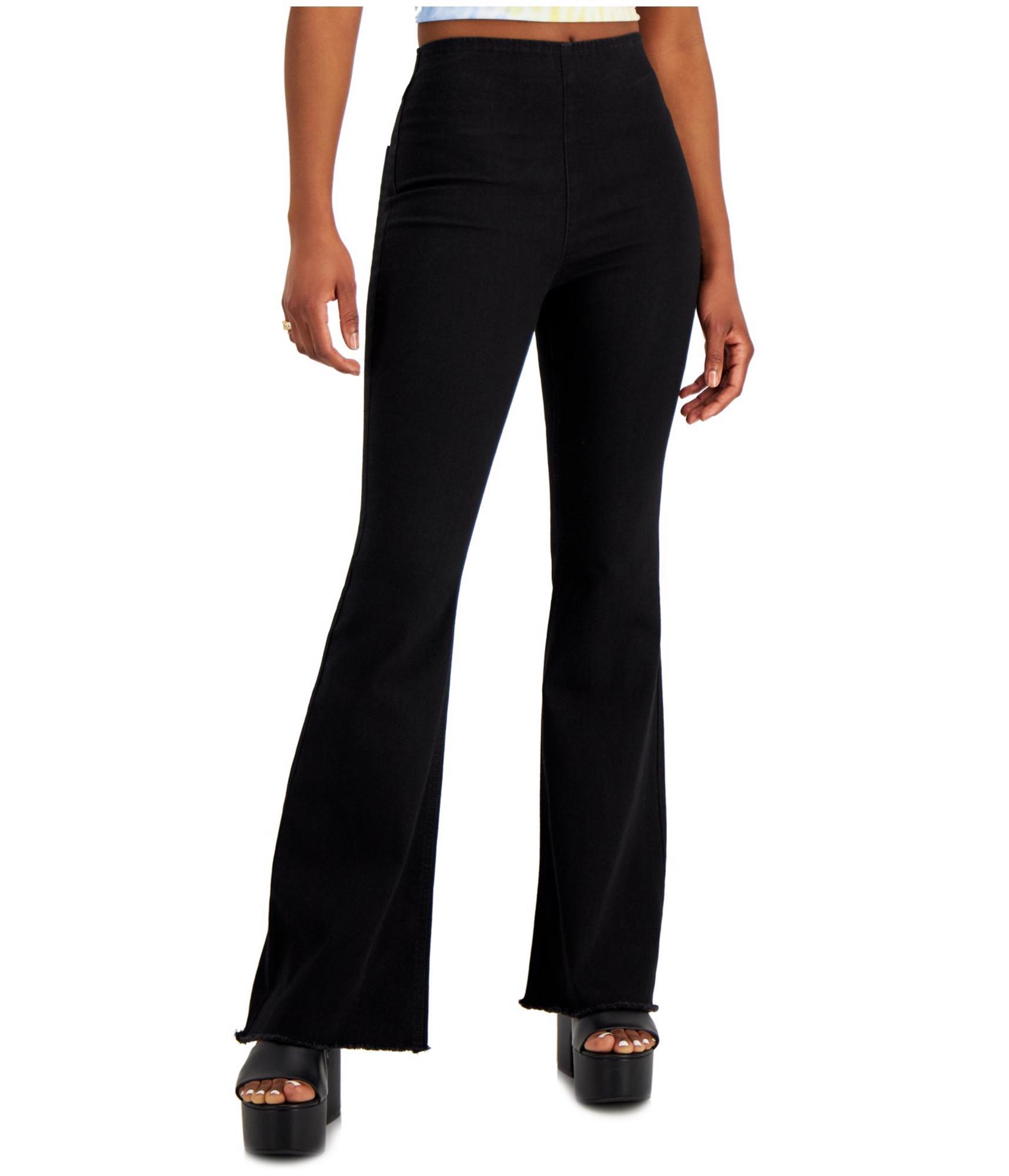 Tinseltown Womens High Rise Pull On Flared Jeans, black, Juniors, 7