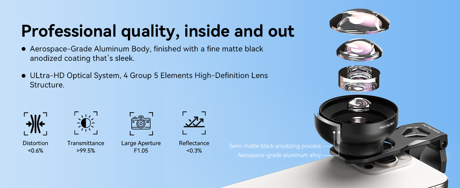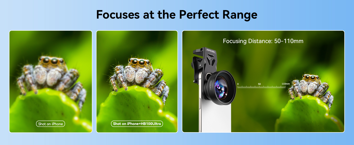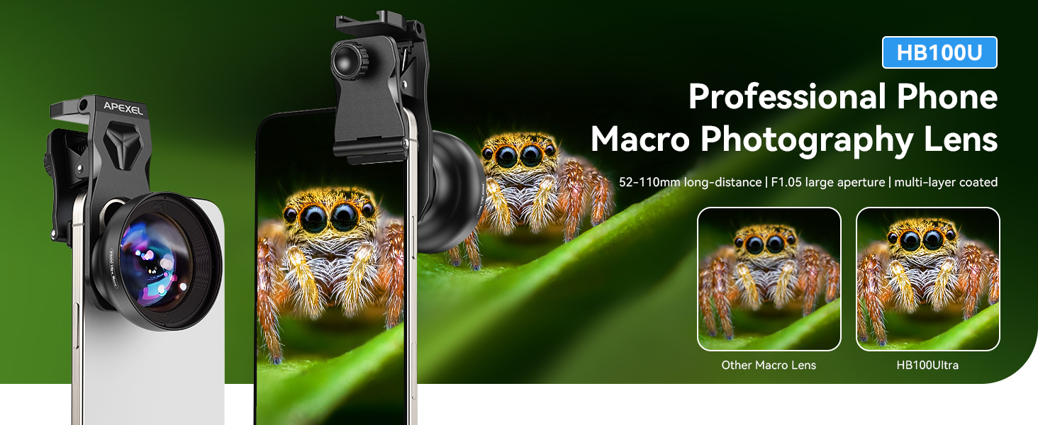 【Excellent Optical Performance】Multi-lens combination boosts light transmittance to 99.5% (per lens), minimizing reflections and lens flare for brighter, sharper imagery. Tired of struggling to capture blurry macro shots with your phone? Meet HB100Ultra!