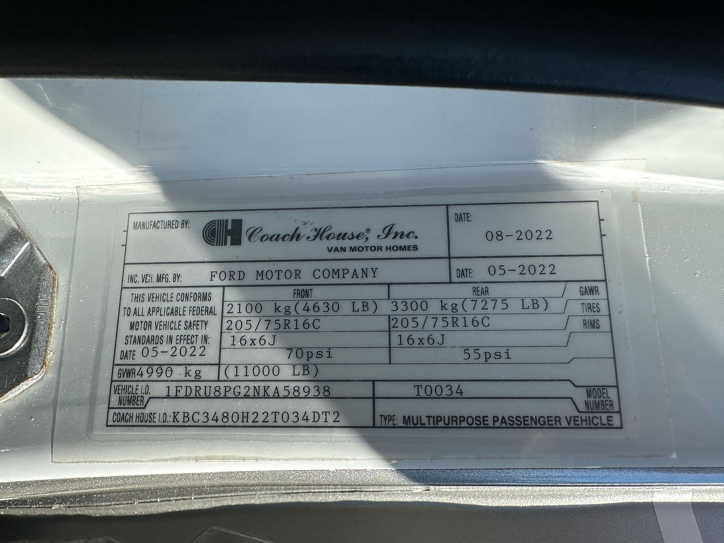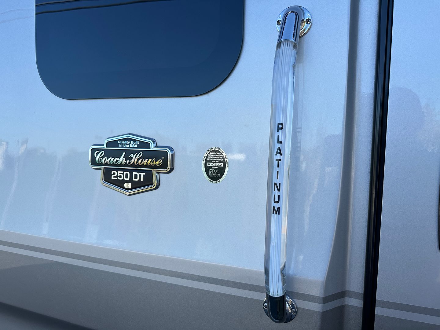For sale is a 2023 Coach House Platinum III 250DT on a Ford Transit 3500 Chassis, with 3.5L EcoBoost V6 gas engine producing 306 hp and 400 lb-ft of torque, paired with 10-speed automatic transmission, AWD-Wheel Drive drivetrain and Towing capacity of 5,000 lbs. Comes on premium chassis with adaptive cruise, power heated driver and passenger seats, Large touch screen with navigation and rear camera system. The RV has only 1,083 miles, measures approximately 25 feet 5 inches in length, features one piece fiberglass body, electric awning with LED lighting, 31 gallon fresh water tank, 28 gallon grey water tank, and a 19 gallon black water tank, with a GVWR of 11,000 lbs. This van comes with Lithium Batteries, Xantrex 2000 watt inverter, built in Onan 4KW gas Generator with 10 hours, 3 Way Fridge, Gas Stove, Stainless Sink, Corian Countertop and Instant Water Heater. This luxury van is built for comfort, performance, and reliability perfect for go anywhere travel. This van is 2023 model and was sold as 2023 and currently 2023 on the title, but Due to California DMV regulation tenth character in the vin number represents year of the vehicle, the year of the RV on California title will be 2022. Please see over 150 pictures below.