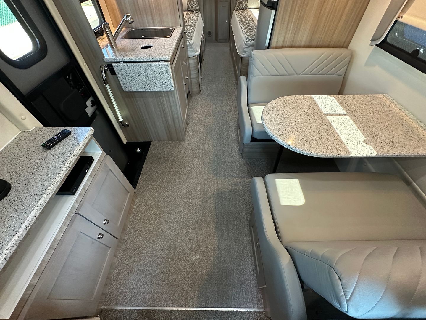 Van has a Georgia Certificate Of Title salvage, due to front top cap damage. Exterior top cap fiberglass been repaired and painted, interior above cab fiberglass piece replaced and three cabinets were also replaced. Please see before repair pictures at very end. Everything has been inspected on the van and works. Van runs and drives like new, everything work like it should. Van is now located in Sacramento California. Van is sold AS-IS by a dealer that specializes in branded RVs. It is currently not registered. All California Buyer must pay sales tax, varies by residence. This van was over $250,000 when new have it for fraction of that price with only 1k miles!! Feel free to make me an reasonable offer and call me or text with any additional questions at 916-343-3437 (Paul) Thank you!!