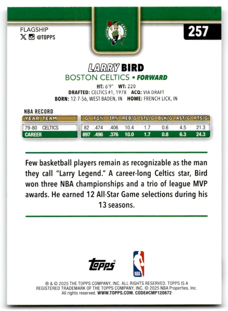 | 2025-26 Topps Larry Bird Boston Celtics #257 |