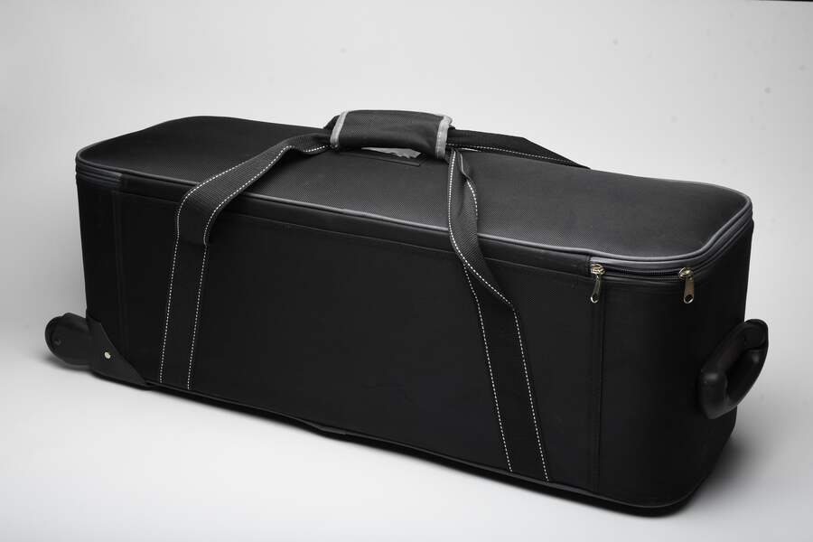 Includes 2X 6' spring loaded stands, 60" softbox, 6" reflector, snoot, speed ring, transmitter, receiver, sync cord, and 2X power cords. Also includes good condition flash tubes and modeling lamps + covers, all in a great fitted rolling padded case