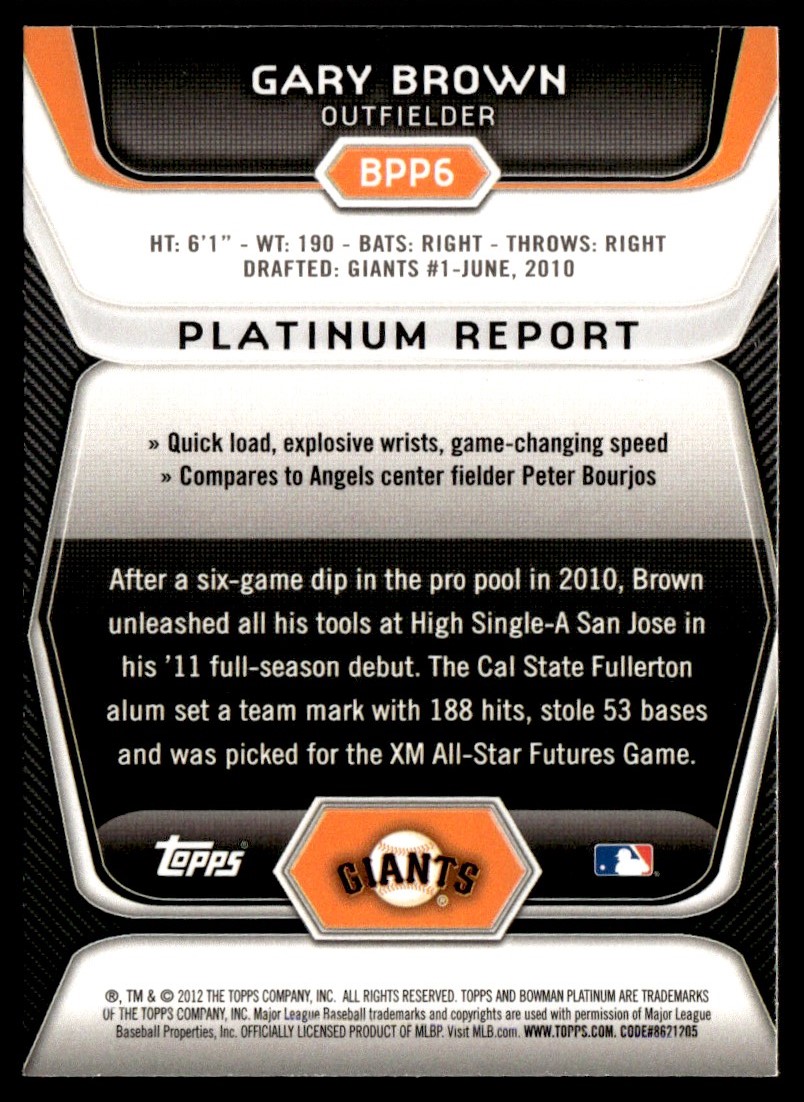 2012 Bowman Platinum Prospects Gary Brown Rookie #BPP5