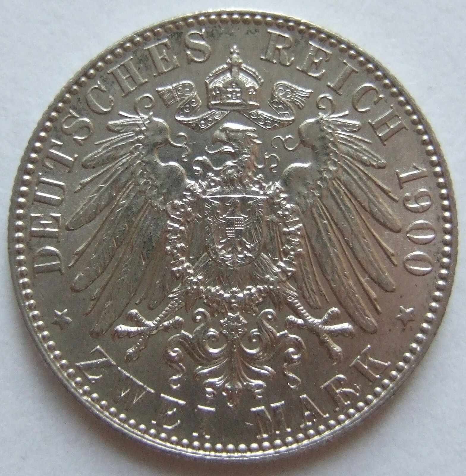 Kaierreich 2 Mark Albert König of Saxony 1900 e in Extremely fine / Brillant uncirculated